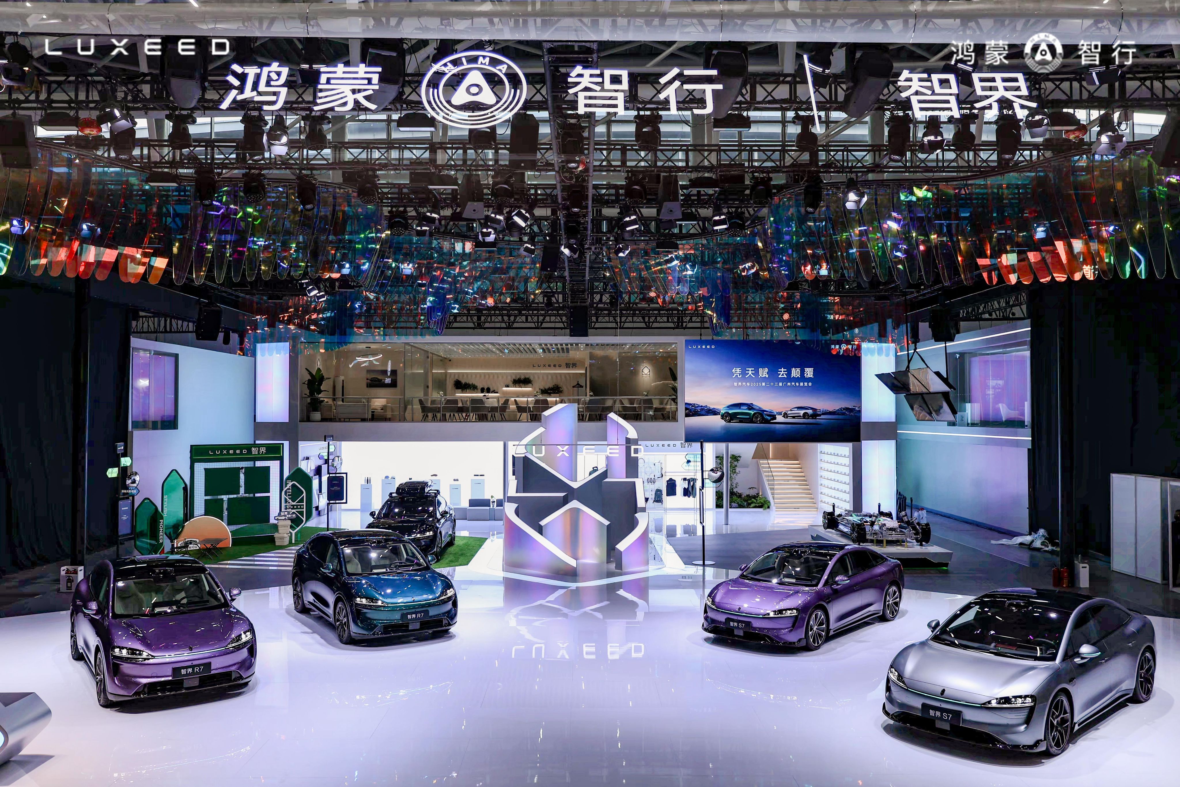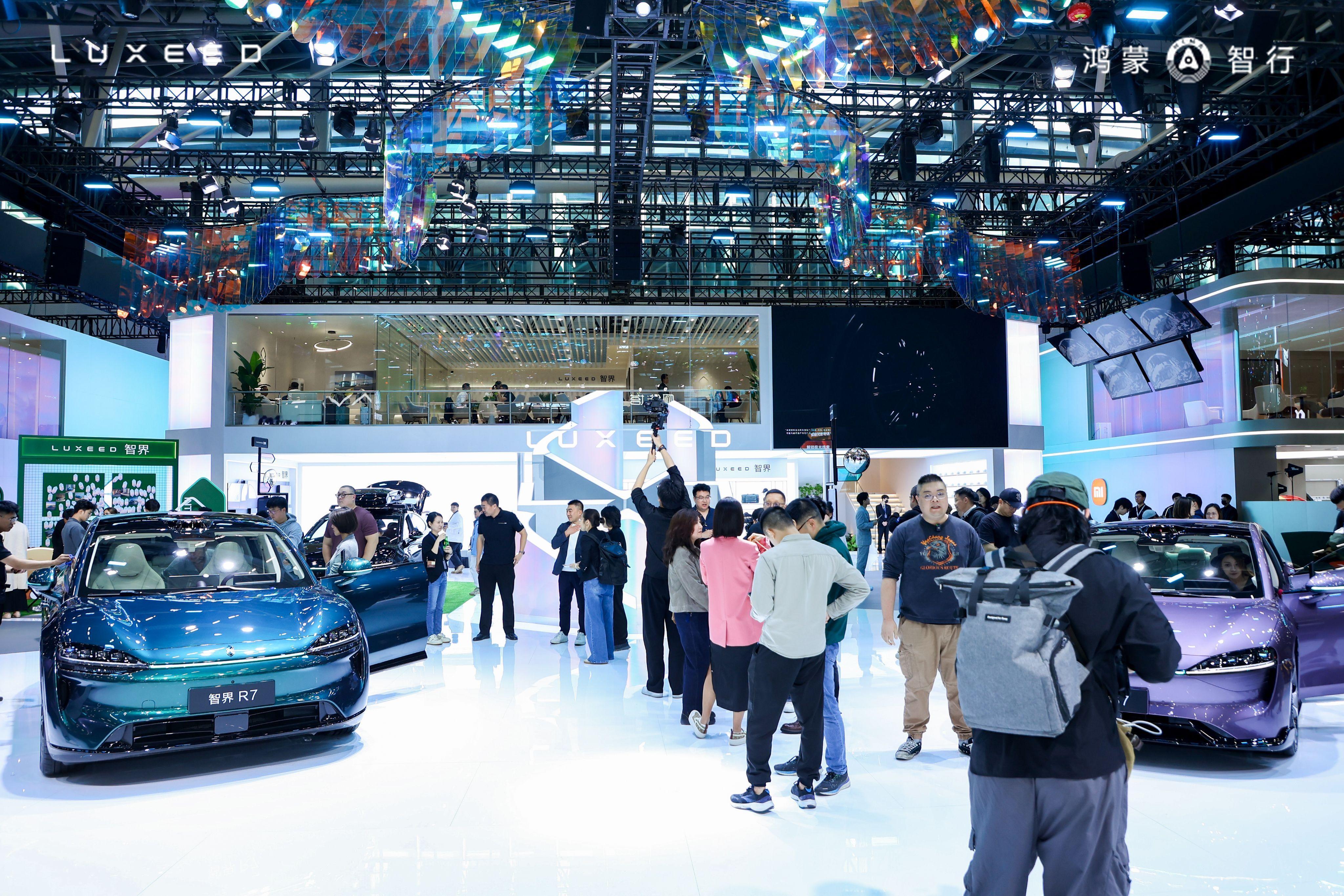 大家注意,智界这次是独立展台!这可是智界2.0后的重要亮相,华为与奇瑞的合作越来越默契,品牌底气肉眼可见!智界品牌也是越来越为大家熟知了,本身就是刘亦菲代言,后面冯巩儿子、李连杰女儿等星二代果断下定。当然,作为年轻人的购车首选,还是因为产品实力强,而且更像是懂审美、懂需求的科技潮品,开智界就有一种年轻格调。硬实力最看重的安全,智界R7直接拉满buff:DSA动态转向辅助让湿滑路面不跑偏,爆胎0.7s就能介入稳定车身,CAS 4.0系统全天候守护,晕车能通过舒适制动缓解,刹停不点头。还有前排双零重力座椅,加热通风+10点按摩,还有我非常喜欢的隔窗对讲机功能,好玩又实用。现在华为全流程把控产销服,渠道和服务越来越成熟,累计交付破10万台、NPS大幅提升就是最好的证明。这次车展恰逢智界两周年,独立展台更是福利诚意满满:黑武士套件限时免费选,12月1日前锁单还有至高1.5万购置税补贴,现在入手妥妥的最佳时机。