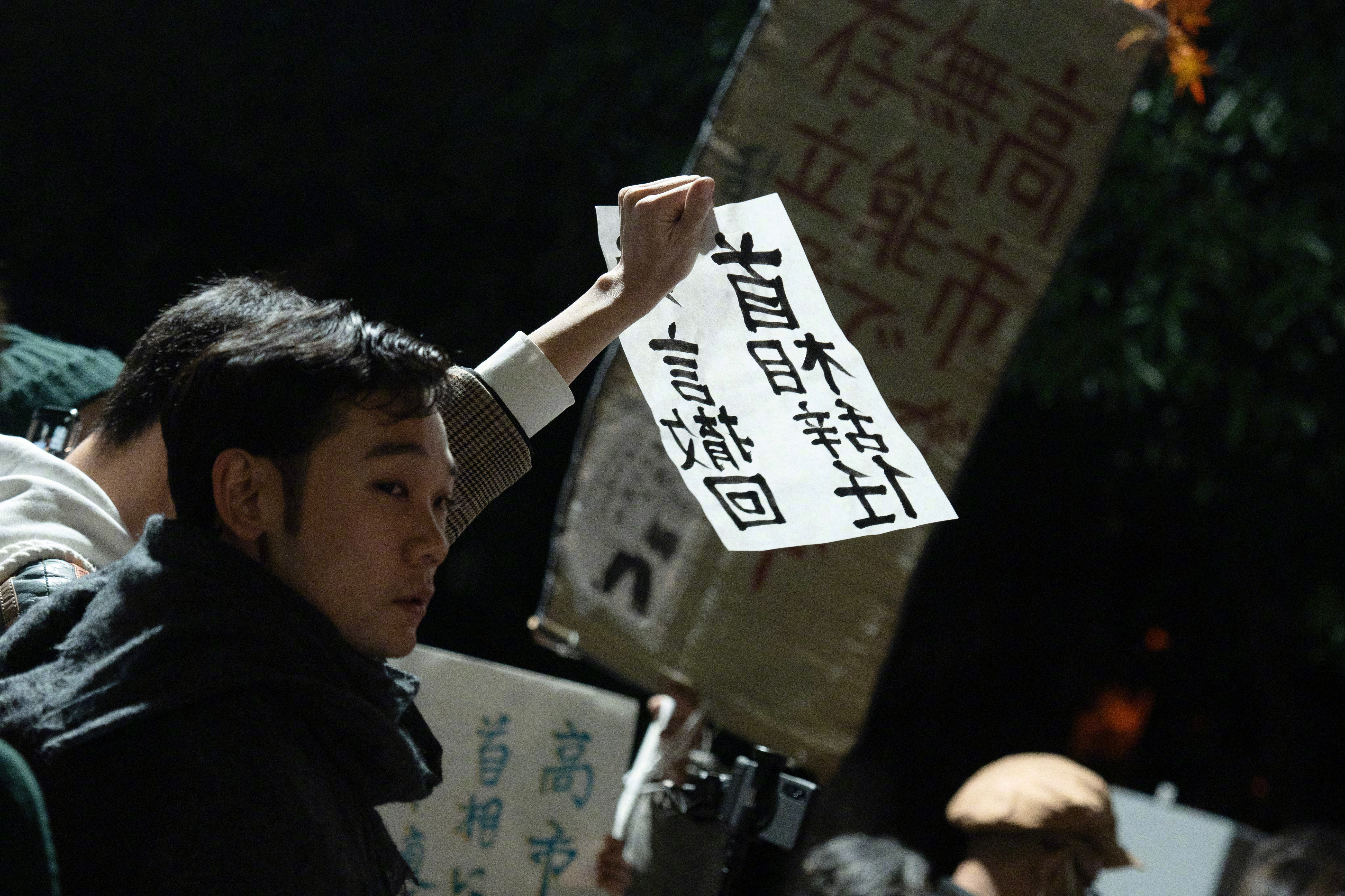 【东京数百民众在首相官邸前抗议高市涉台言论】 数百名日本民众21日晚在位于东京的首相官邸前举行集会,抗议日本首相高市早苗近日在国会发表的涉台错误言论,要求其撤回相关表态并作出解释和道歉。(新华社)