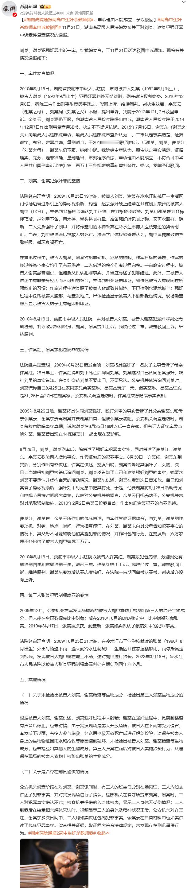 11月21日,“两高中生奸杀教师案申诉被驳回”引发热议。16年前案件,刘某、谢某被认定奸杀教师,判无期。多年来,家属坚称无罪,指出刑讯逼供、证据瑕疵等问题。如今申诉驳回,司法程序看似走完,可公众对公正的追问不会停止,期待能有更透明的调查,还原事实。