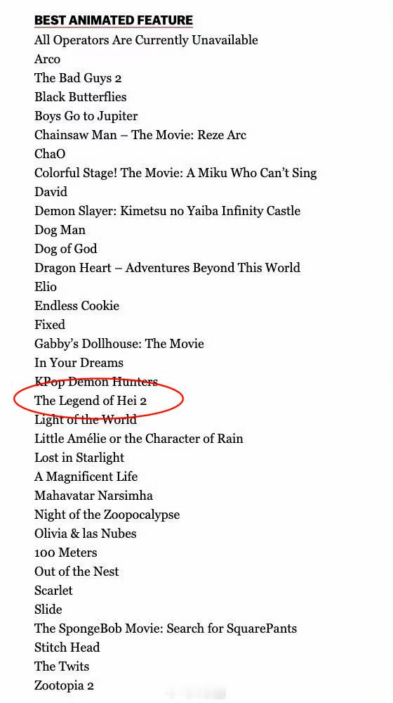 国产动画电影「罗小黑战记2」出现在奥斯卡最佳动画长片符合提名资格的名单中,而意外的是,「哪吒2」并未在此名单中,有传该片并未报名?