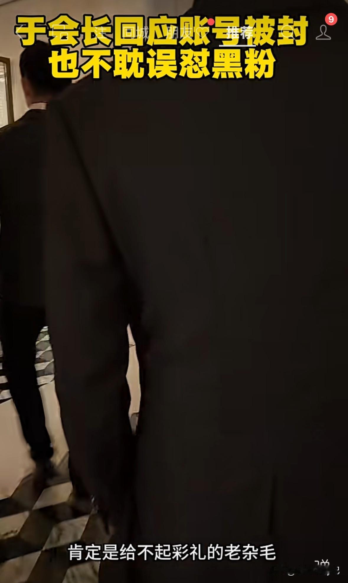 于文红账号被封,怒骂网友不值钱货。 于文红太张狂了,她说“我账号被封怎么了,也不耽误我骂你们,你个五毛钱的没出息货,老za毛,给不起财礼,没收过彩礼的人”。 感觉于文红好没素质呀,你又要流量,又要曝光度,又不准别人有不同看法,这也太霸道了。粉丝又没等你给开工资,为啥不能有不同意见呢。