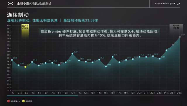 新P7的制动效果有这么稳 看了新P7制动性能实测的视频,连续26次百公里紧急制动,前24次制动距离还没啥明显的衰减,到第25次才开始有点衰退,连湿地和复杂路况都能稳稳停住,这稳定性确实有点超出我的预期。 像我平时开车,要是连续两三次急刹,脚感就开始飘了,新P7这波成绩,感觉有点往跑车看齐了? 另外我有点好奇,这种频繁急刹对电车来说负担比油车大还是小?电车有动能回收系统在帮忙分散负荷,但电车也比油车重很多,有没有懂技术的朋友来科普一下?