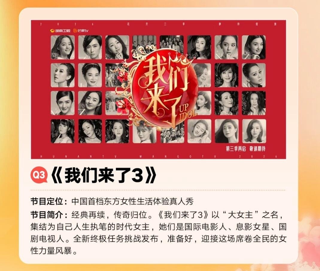 🥭《我们来了3》提档至Q1播出,网传那英加盟那英|
