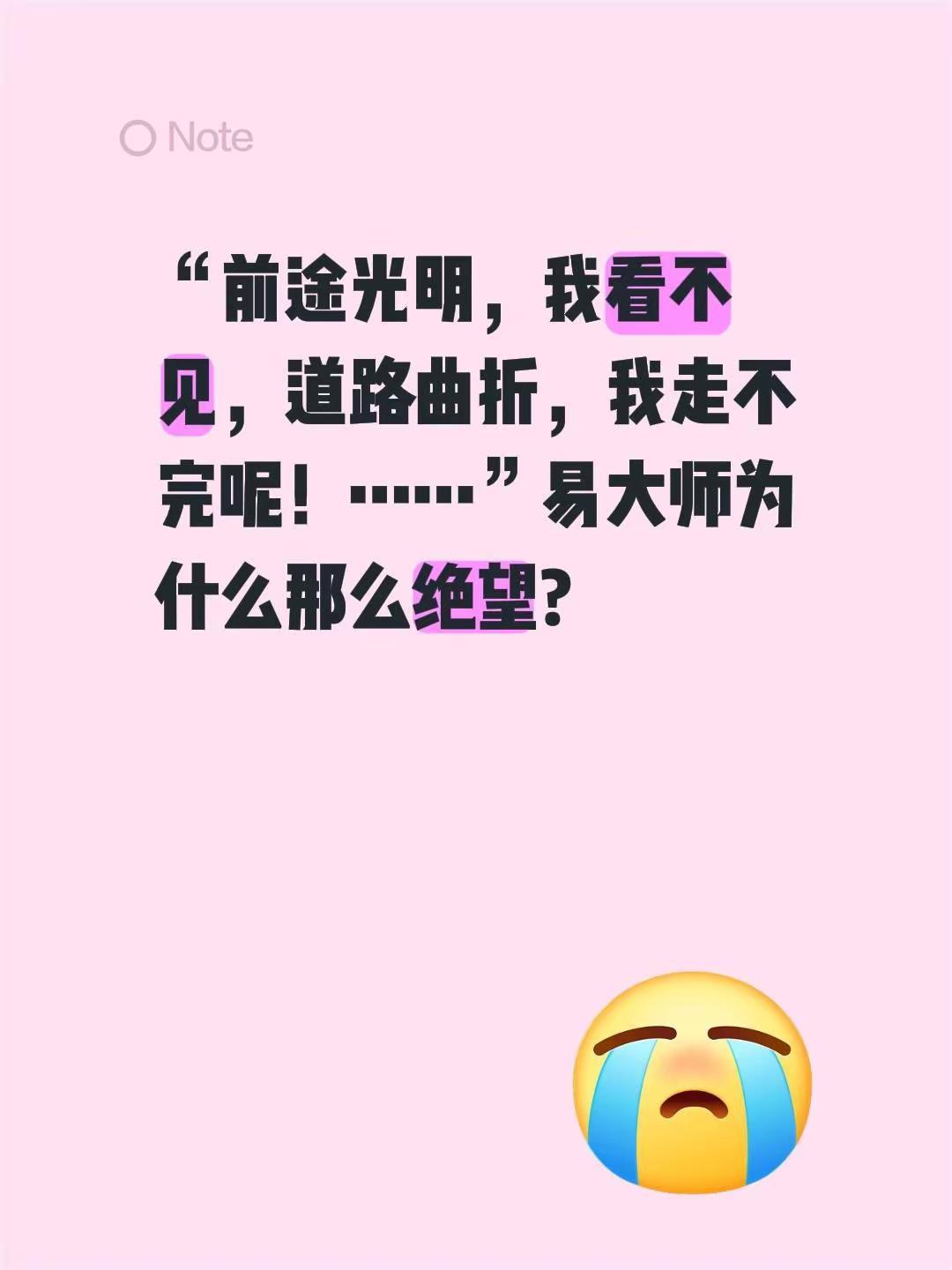 我评论了@百家智慧 的作品:“前途光明,我看不见,道路曲折,我走不完呢!……”易大师为什么那么绝望?