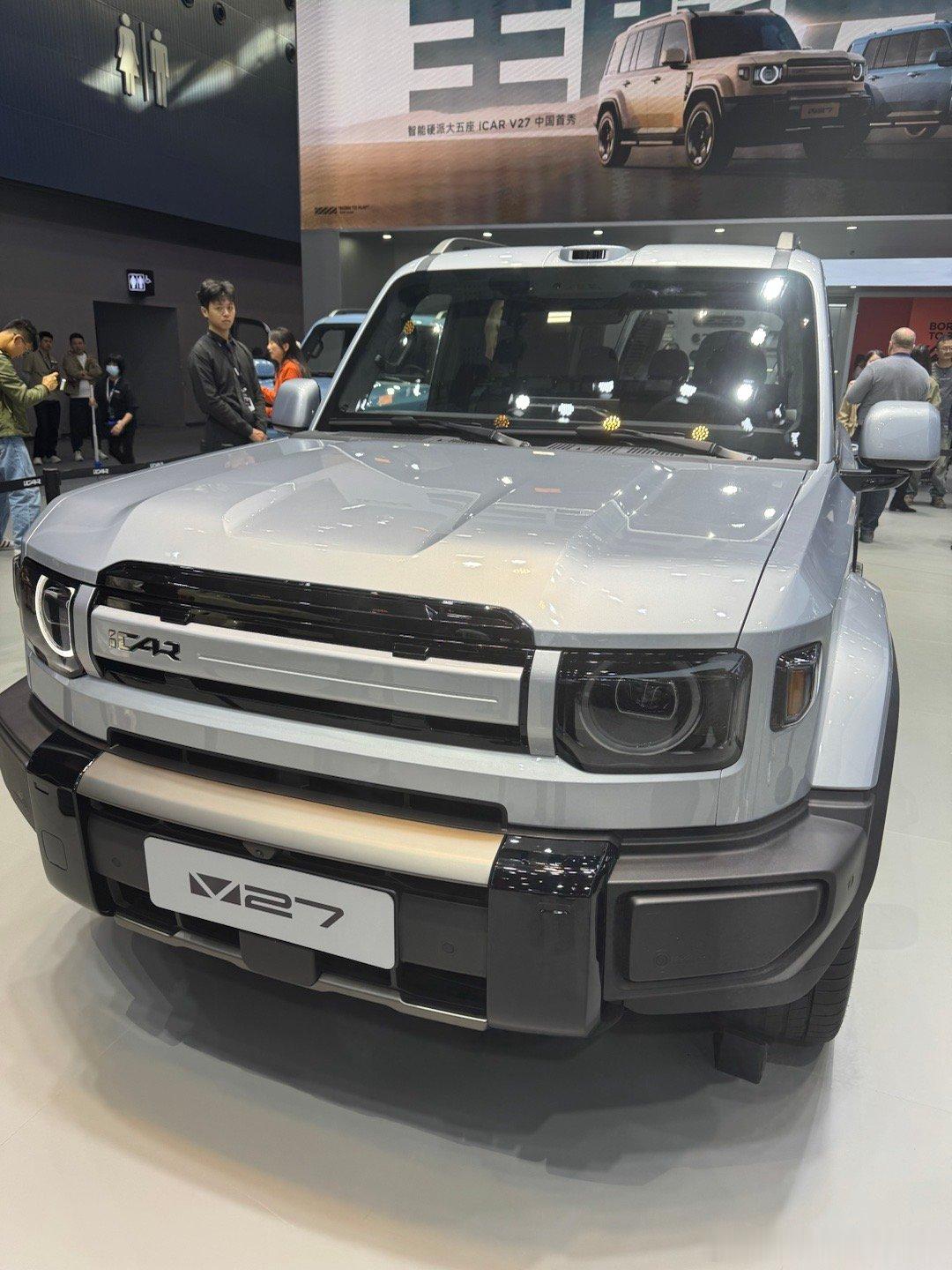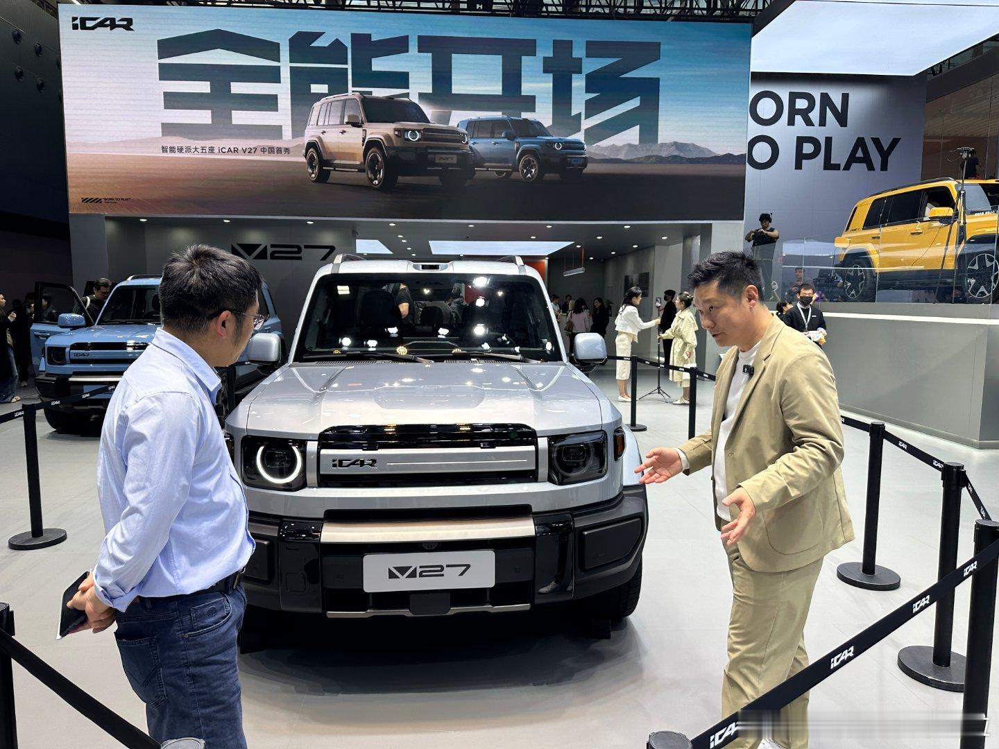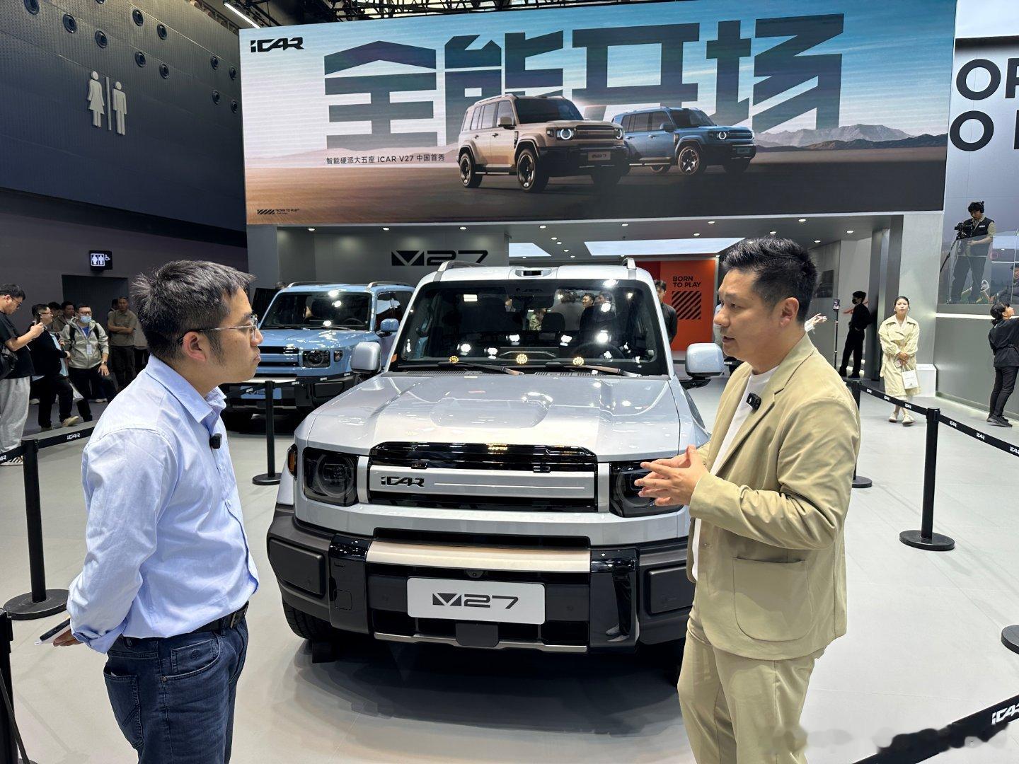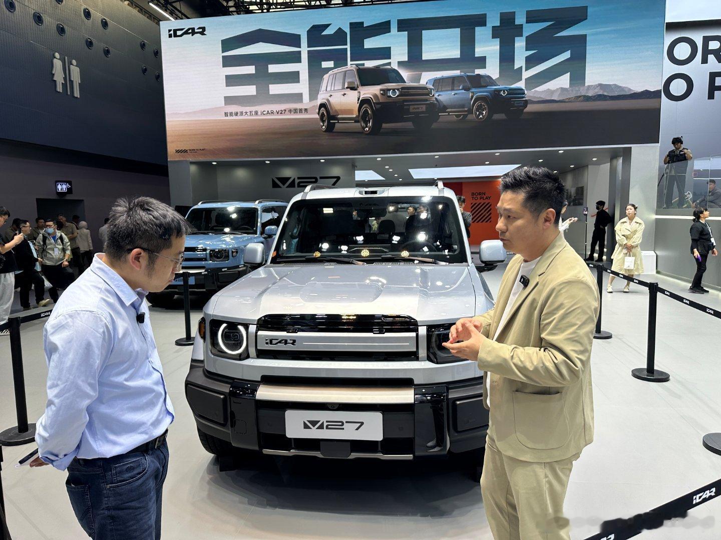 昨天去了一下icar展台,看了一下刚在 亮相发布的 发现两大惊喜:第一,真车比照片里呈现的好看太多太多,第二,内饰的精致程度和设计用心程度远超预期。尤其是纵向天际舷窗天幕设计,有种坐进宇宙飞船的科幻感(抱歉当时只顾着录视频去啦),还现场与V27主设计师——一位曾在奔驰效力过的设计老法师张自然同学亲切交流了半个小时。不得不说,这款车的最终呈现效果确实打动了我,虽然前期我曾两次参与它的外观品鉴。这台车如果打到20万以下,我觉得爆款机会大大滴。作为一个硬派越野油车的用户,我感觉要对自己的购车需求做一下重新定位。因为我的福特烈马买回来一年半跑了四万多公里,我竟然没有一次开着他去越野所以,像icar V27这样的新能源方盒子(同步推出纯电和增程),对于我这样的用户而言,就真的对味了 感谢张老师现场抓拍