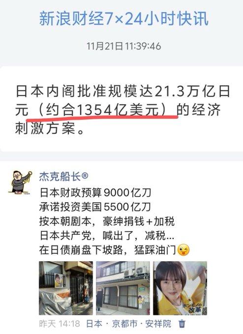 日本内阁批准21.3万亿日元的经济刺激方案! 2025年11月21日,日本国会众议院刚通过高市早苗政府提出的2025年度补充预算案,规模21.3万亿日元(约1354亿美元),是日本历史上第三大规模的刺激方案。主要内容包括向每位国民(含外国人居民)发放10万日元现金+物价上涨补贴、大幅提高防卫费、地方交付金、儿童家庭补贴等。 日本国债余额已超过1300万亿日元(GDP的2.6倍),是全球最高负债率国家。高市政府却选择“债台高筑也要发钱+强军”,被网民形容为“末期病人猛打激素”。 日本京都一家真实存在的破产殡仪馆2025年10月倒闭,原因是因为老年人去世太多、竞争激烈、物价飞涨导致经营不下去了。网友用这张图暗讽:日本现在是“发钱发到殡仪馆都倒闭”的荒诞景象。