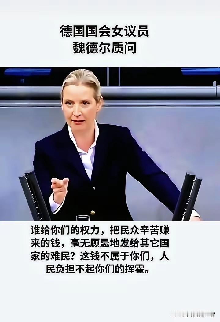 直面对决,德国女议员魏德尔质问德国政府 德国国会女议员魏德尔质问德国政府,显示出女议员的正直与良心,为民众服务,体察民意,同时监督政府,这才是真正为民服务的议员和人民代表,刚正不阿,值得尊敬和点赞[赞]