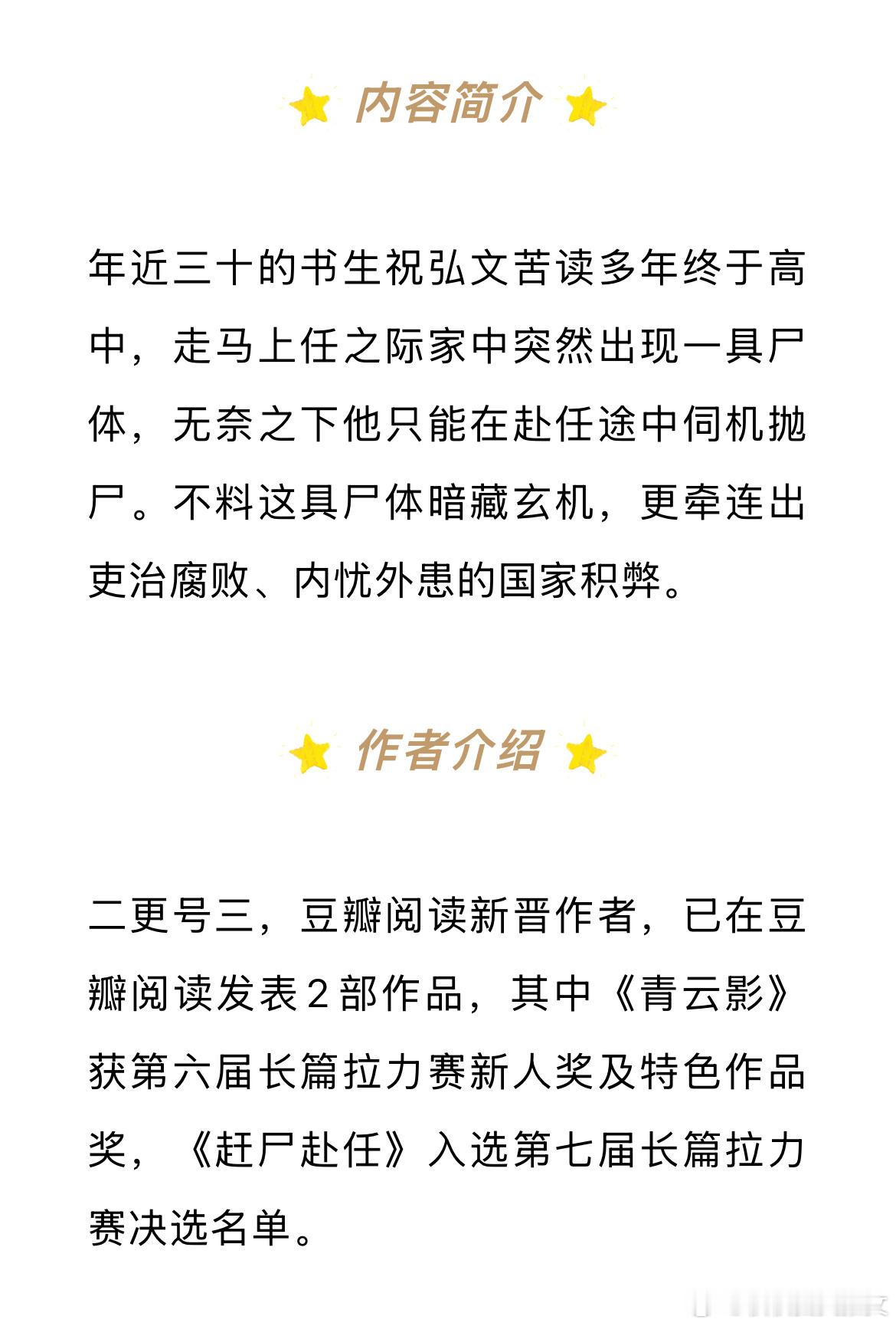 豆瓣阅读悬疑小说《赶尸赴任》售出影视改编权,作者二更号三。