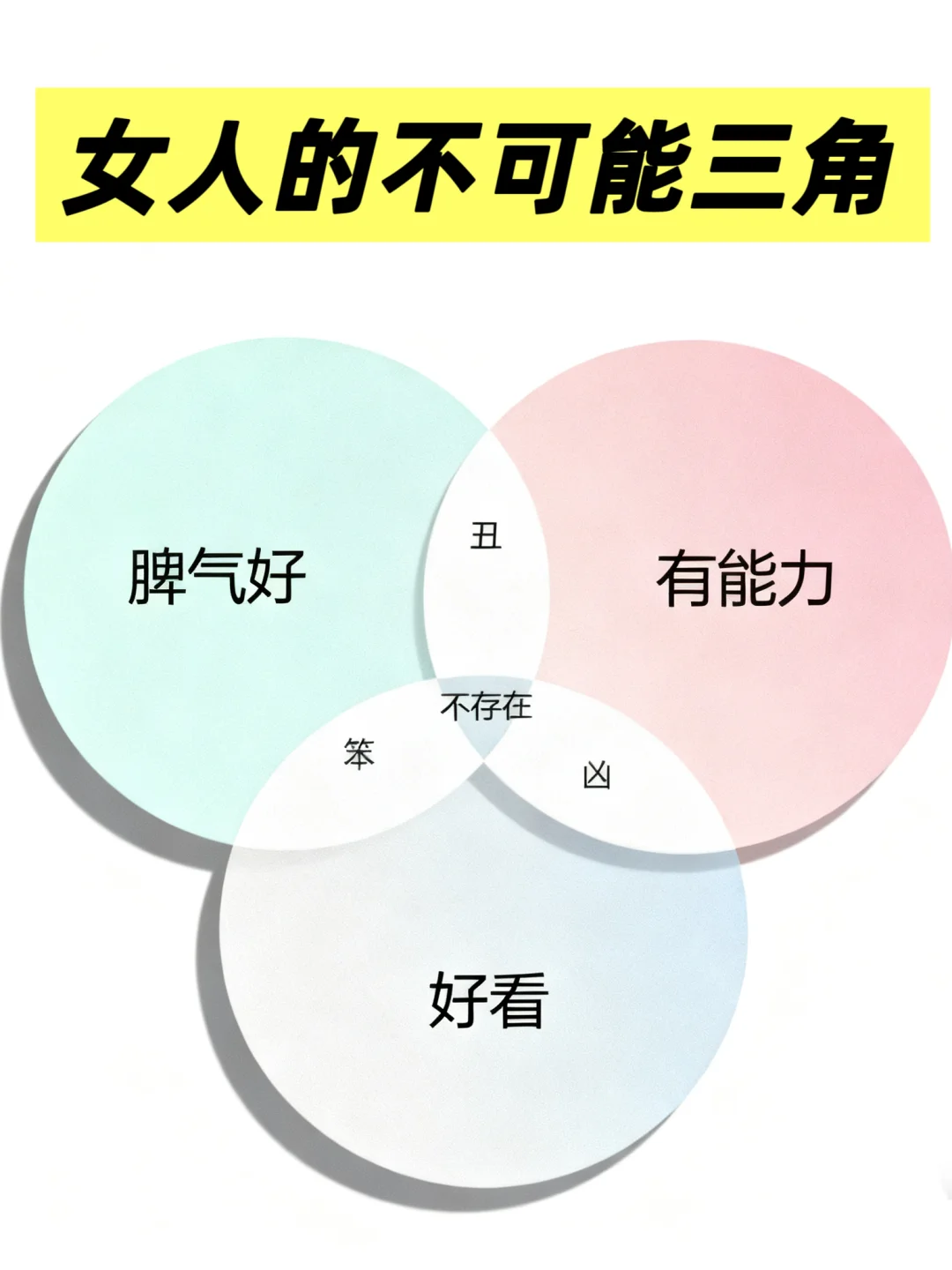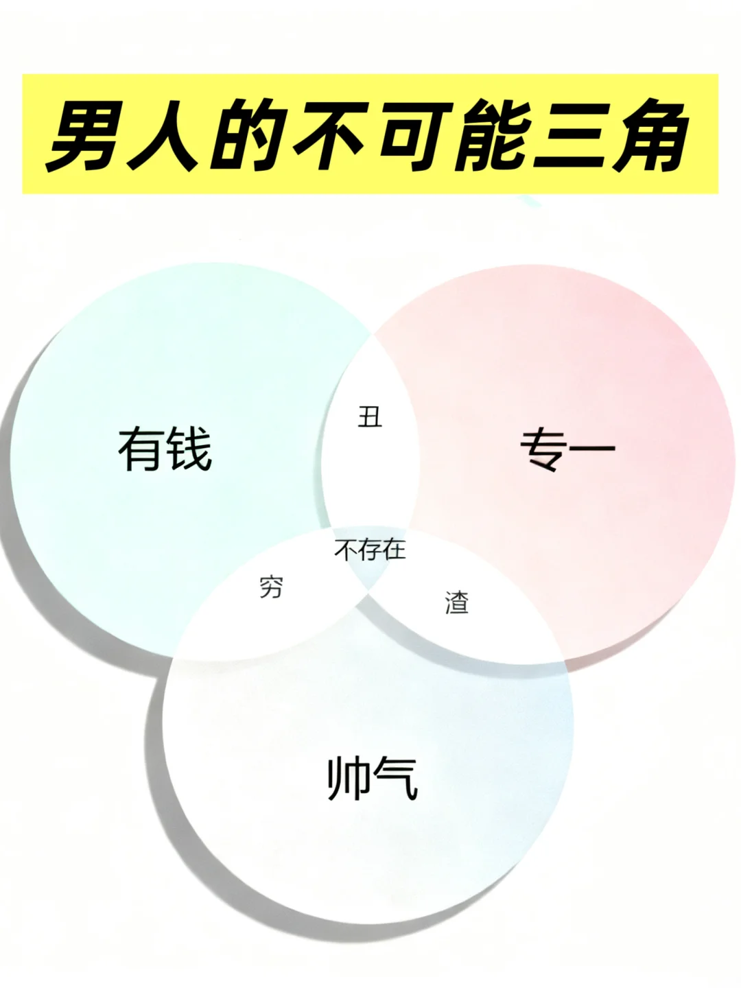 ‼️所以男生帅气、有钱又专一,女生漂亮、聪明又温柔,同时出现的概率非常低。即使有,也不会沦落到市场让你捡漏。这就是三元悖论,更专业的说法叫“蒙代尔不可能三角”。