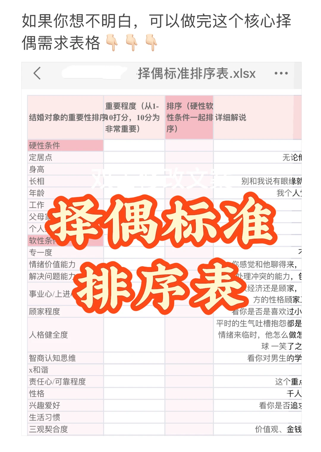 所以弄清楚的自己的【核心择偶需求】才是关键!