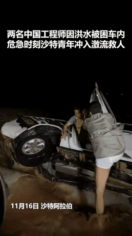 上人民日报了! 沙特阿拉伯,两名中国工程师开车途中遭遇洪水车辆不幸侧翻,危机时刻,沙特青年冲入激流救人,拉出一个后,关切的询问是否其他人,在得到肯定的答复后,再次冲入激流中救人…… 有人说,善良的人在哪里都是善良的,虽然国家不同,语言不通,但那句“朋友”让人听的心里暖暖的。 本就身处异国的工程师,在如此危难关头,还能得到这样及时且热心的救助,真是太让人感动了。 沙特也是我们的友好国家,所以沙特的年轻人对我们的工程师无私的伸出援手,他们对我们的感情就像我们跟巴基斯坦人民之间潜移默化的友好关系一样。为这些勇敢而善良的沙特青年点赞! 应该给沙特这救人的年轻人授予”见义勇为英雄”并颁发奖金! 沙特青年的这一拉,太戳人心窝子了!没有国界之分,没有偏见隔阂,只凭着纯粹的善意伸出援手,既拉回了生命的温暖,更彰显了国际主义人道精神的珍贵。