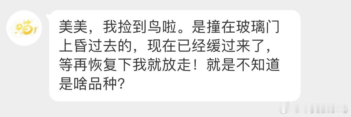 把握良鸡环节一只撞玻璃的【丝光椋鸟】没什么大碍带出去放飞即可尽量避免直接触碰触野生动物,可以带个一次性手套啥的 干净又卫生! 记得洗手