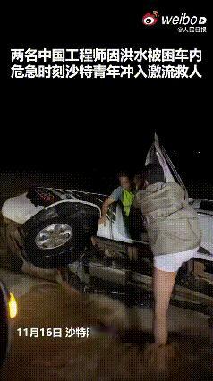 哪里都有好人!近日,沙特某省因强降雨突发山洪,两名中国工程师驾驶车辆涉水时侧翻、