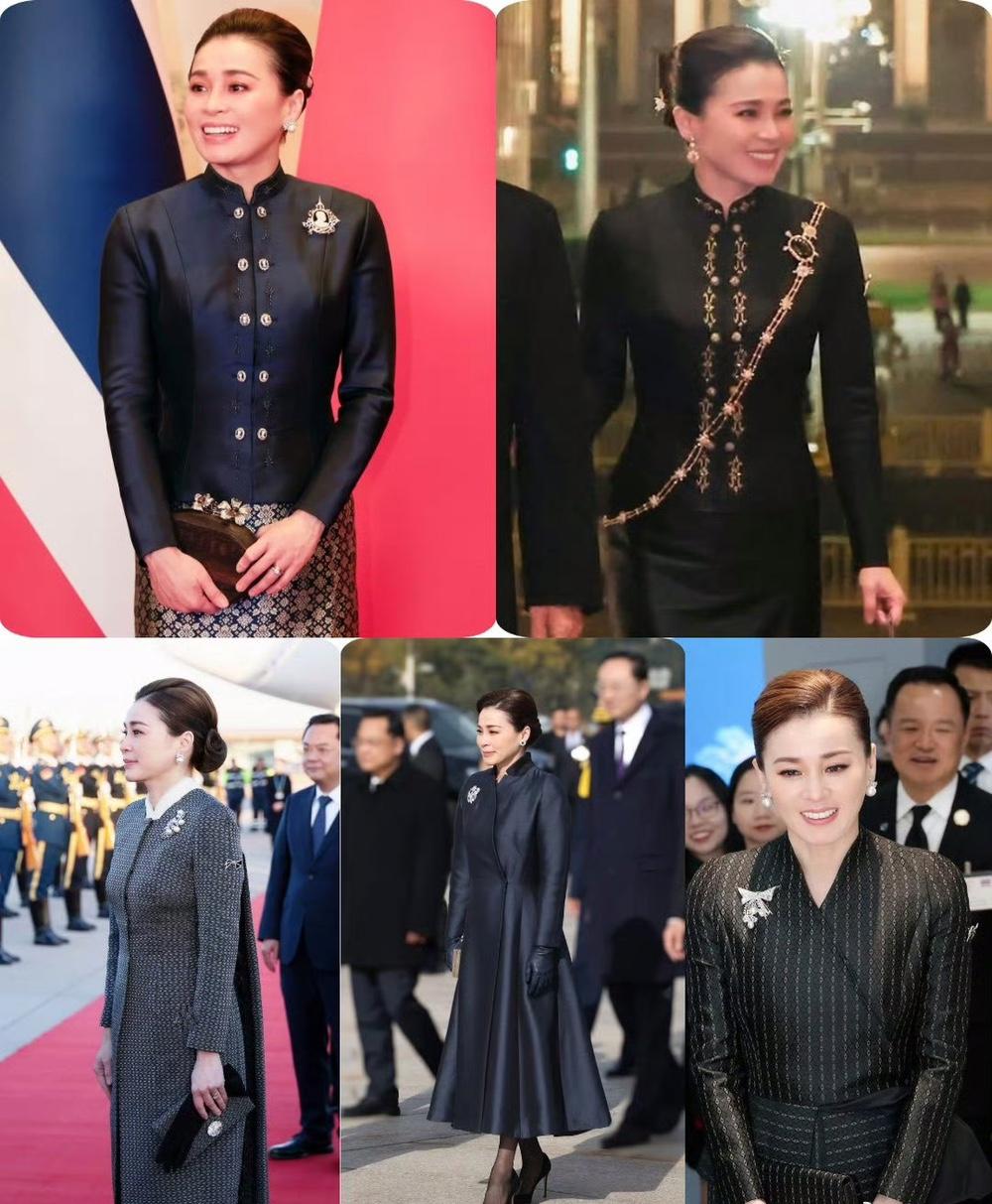 九套造型完美演绎王室风。 泰国王后苏提达访华时的穿搭造型简直魅力爆棚!当地时间11月17日,她和泰王逛故宫,当时北京寒风凛冽,她却踩着10公分细高跟如履平地,表情管理超绝。她在北京5天换了9套造型,最后一套斗篷大衣造型相当出彩,内搭裙子与外搭斗篷叠穿,还有帽子加持,尽显霸气与优雅,宛如画中走出的名门闺秀,随便一拍就是电影画报质感,和故宫很相称。左臂上的黑色蝴蝶结胸针还表达着对泰国诗丽吉太后的纪念。回国后她风格又变,从“端庄大使”秒变“温柔邻家姐姐”,这女人真太懂穿搭即话语权了。 泰王访华