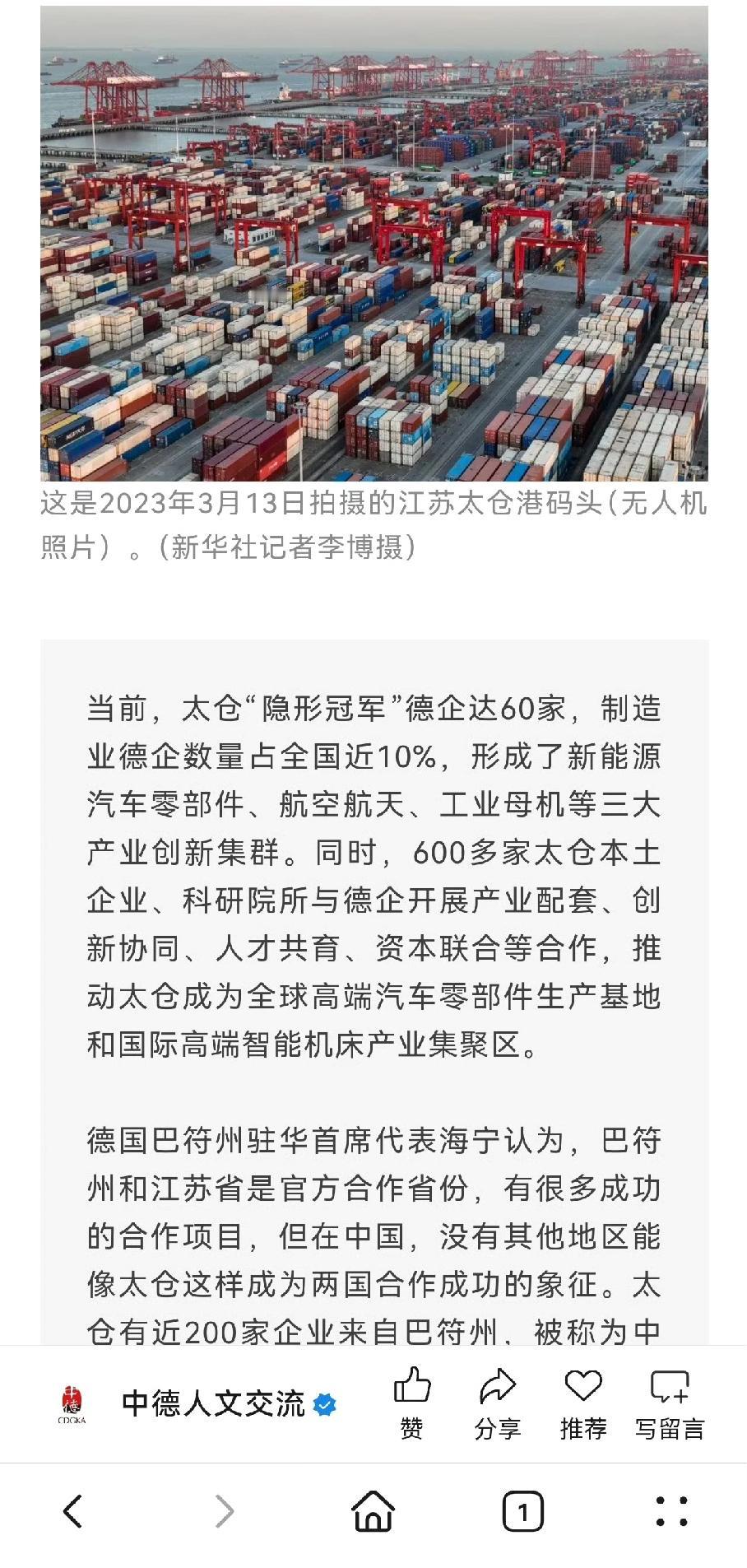 德国的工业4.0在中国!苏州分走了德国,无锡瞄准了法国! 江苏太仓这个很多人不太熟悉的城市,落户了超过500多家德国企业,为了让德国人在这里安心居住,这里建起了仿德国的小镇,这里有最纯正的德国啤酒。 一看隔壁的苏州吸引了这么多来自德国的企业,无锡则是瞄准了法国,与法国的相关企业建立了合作,打造了相关的功能区。 各位是怎么看的?欢迎评论区留言。