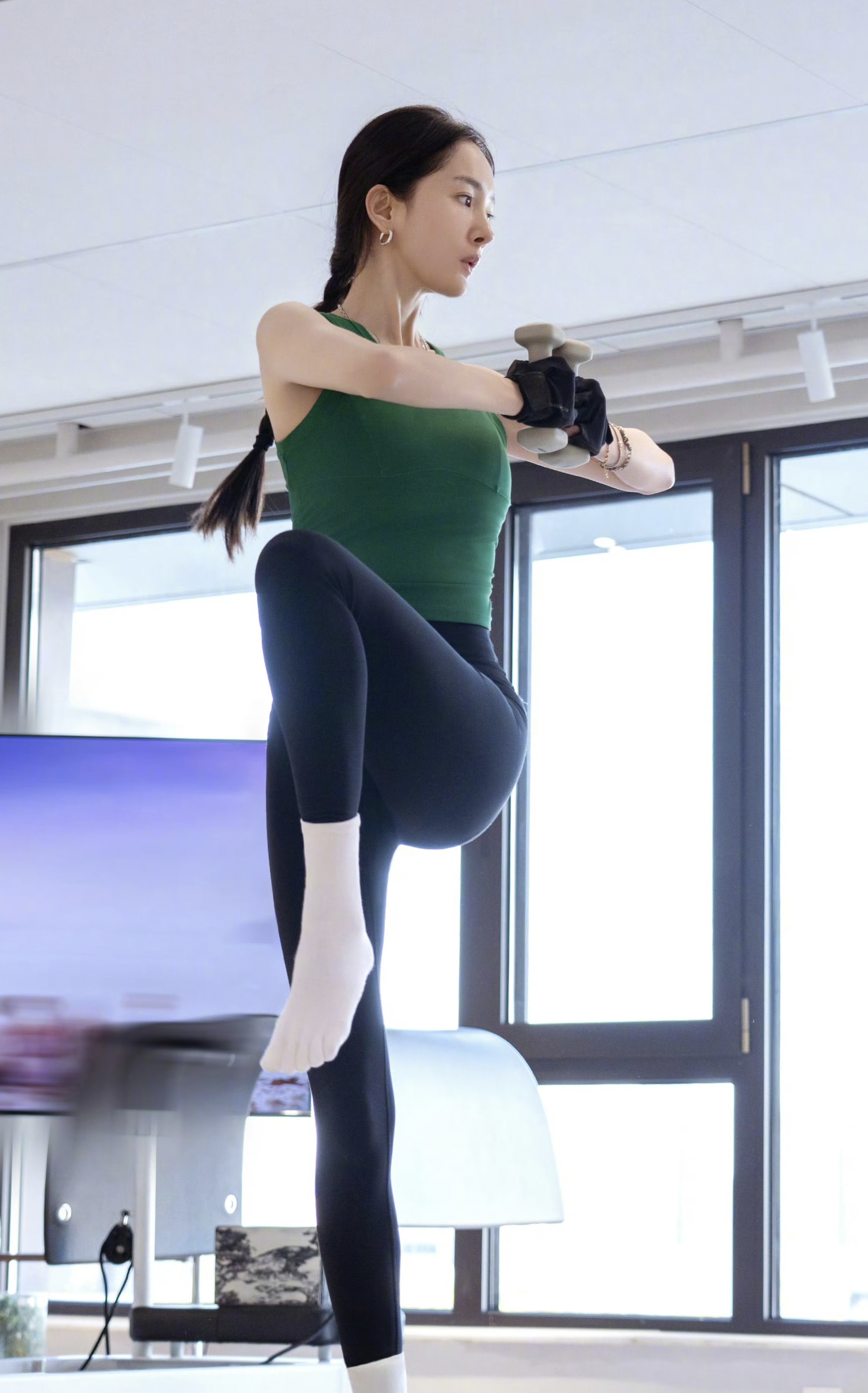 女顶流演员素颜健身锻炼,紧身衣姣出好身材,这波元气能量满满的。演员美女