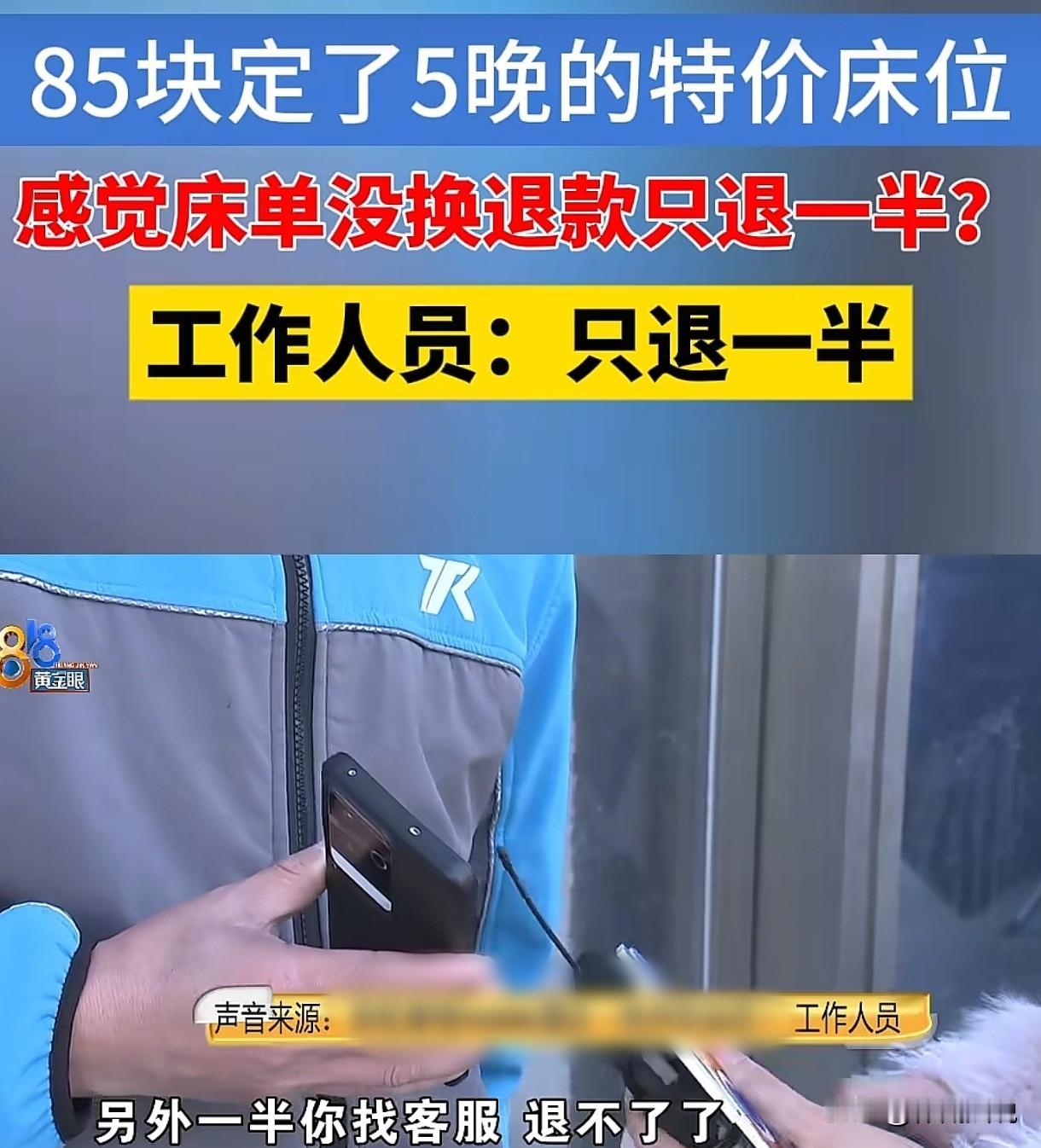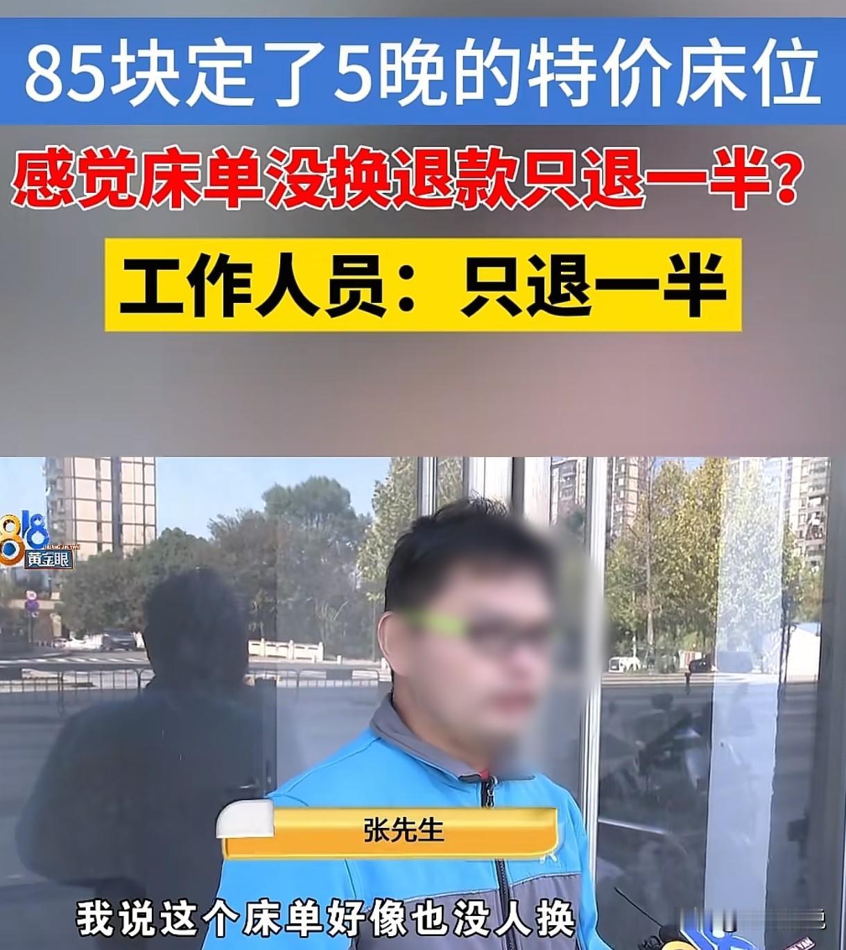 浙江杭州,男子做试药员,空窗期要自己找住的地方,他花85.5元订了5晚的特价床位。可到了现场后,发现床单没换,联系店家,店家说有人来处理,可男子等了2个多小时,也没看到人,店家也联系不上。男子想退房,联系客服,客服那边也要排队60分钟,等他终于联系上客服,客服却说已经超过了入住的时间,只给男子退一半房费,男子接受不了:我没有实际入住,而且房间卫生一塌糊涂,不符合基本卫生要求。 张先生是河南信阳人,他到杭州参加临床实验,做试药员,做试药员有个空窗期,这期间医院不提供住宿,张先生只能自己找地方落脚。 张先生对住宿没啥特殊要求,能有个地方住就行,他在网上订了一家客栈的特价床位房,从11月18日到23日,一共5晚,一共85.5元, 11月18日下午2点多,张先生风尘仆仆地到了客栈,按常理,住店都得店家安排床铺,指定哪个铺位就是哪个,上面都是有编号的。 张先生联系店家,可电话打过去,没人接;发信息过去,也没个回音,客栈也没前台,房间里大概有六七个床位。 下午3点多,店家终于在微信里回复说,空铺随便住就行。张先生一看,说床单都没换,店家说下午会有人过来弄。张先生又追问具体时间,结果店家那边又没动静了。 张先生左等右等,一直等到下午4点多,实在等不下去了,店家联系不上,自己也不能一直在这儿干耗着,得重新找个地方住。 因为预定页面没有直接退订的按钮,他只能联系客服,可等人工客服,得排60分钟的队,打电话过去,全是机器人回复,根本解决不了问题。 好不容易联系上平台,把情况反馈后,平台跟店家沟通,店家却说张先生超过了入住时间,要扣费,还有罚金。 张先生有些急了,页面没有退房按钮,自己一直都在联系人工客服。 刚开始,平台协商说只退30%,要扣70%的费用,张先生没同意,沟通半天,平台才同意退50%,也就是给张先生退回了42.7元的房费。 可张先生还是接受不了,他觉得自己根本就没实际入住,而且那房间环境差得离谱,根本不符合基本的卫生要求。 房间里杂物一堆,要是半夜起来上厕所,很容易就被绊倒;卫生间里的垃圾都堆成小山了,简直惨不忍睹。 他将自己的遭遇告诉给了记者,记者联系商家,商家却说已经给张先生退了一半房费了,剩下的一半让张先生找客服,他们退不了。说完就挂断了电话。 张先生再打过去,商家还是那句话,让张先生问客服为啥只退一半。 记者看了订房页面,上面写着6点前可以免费退。 可工作人员却说,只要办理入住了就退不了,没入住的话才能退。 记者问咋样才算办理入住呢?工作人员回答说,去前台登记就算办理入住。 可记者在现场根本没看到前台,就问商家前台在哪儿,结果对方直接挂了电话。 接着,记者联系了平台客服,客服解释说,他们没争取到全额退款,原因是张先生的订单已经过了免费全额返账的时间。当时订单显示已入住,也就是说,张先生进了房间,就相当于办理入住了。 张先生赶紧解释,说自己实际根本没入住,平台这是只看形式。 客服却说,虽然张先生没入住,但酒店确实给他留了房间。 最后,经过沟通,平台还是给张先生退回了剩下的42.78元,双方达成了和解。 有细心的网友发现,张先生接受采访时,还穿着以前送快递的工作服,心里一阵心酸。大家都在想,如果不是生活所迫,谁愿意去做试药员这种工作呢。 《消费者权益保护法》第10条规定:消费者享有公平交易的权利。消费者在购买商品或者接受服务时,有权获得质量保障、价格合理、计量正确等公平交易条件,有权拒绝经营者的强制交易行为。 商家提供的住宿环境应当符合基本的卫生要求,需要及时更换床单、打扫卫生等。 商家在张先生反馈床单未换、房间卫生差等问题时,没有及时处理,还以超过入住时间为由扣费,这显然不太合理。 《民法典》第577条规定:当事人一方不履行合同义务或者履行合同义务不符合约定的,应当承担继续履行、采取补救措施或者赔偿损失等违约责任。 商家没有按照约定提供符合要求的住宿服务,张先生有权要求解除合同并全额退款。平台以订单显示已入住为由,只退还部分费用,这是不合理的。 最终,平台给张先生办理了全额退款。 关注@律觀法说 ,从法律角度看世界,感受不一样的人情冷暖。