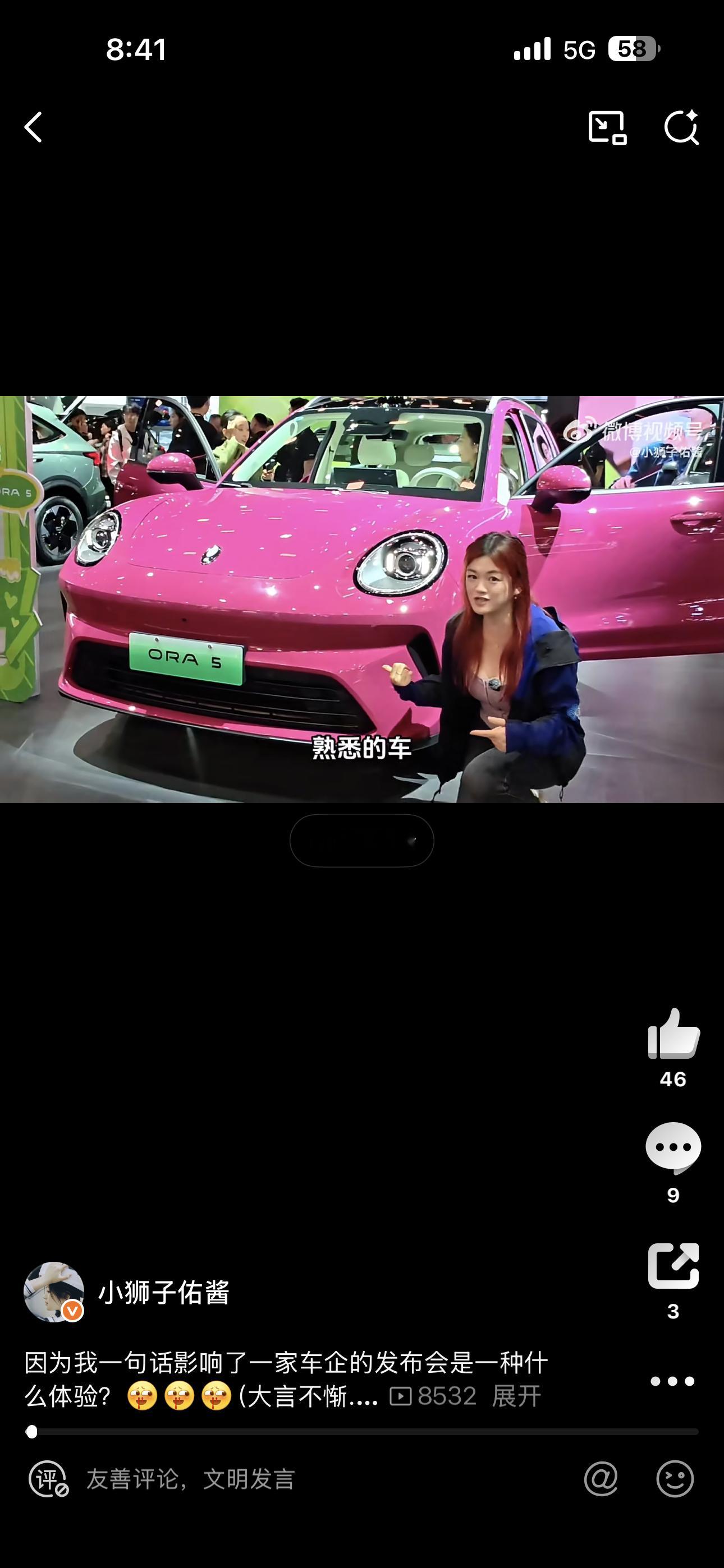 谁没俩精神病的姐们呢?老吴是那种一脚油门200+的疯批。佑酱是最近要擦边擦魔怔了。广州车展她这个视频拍之前我把外套给她我说你穿上再拍我们是正经车评人。结果看到视频了,是这么穿的?