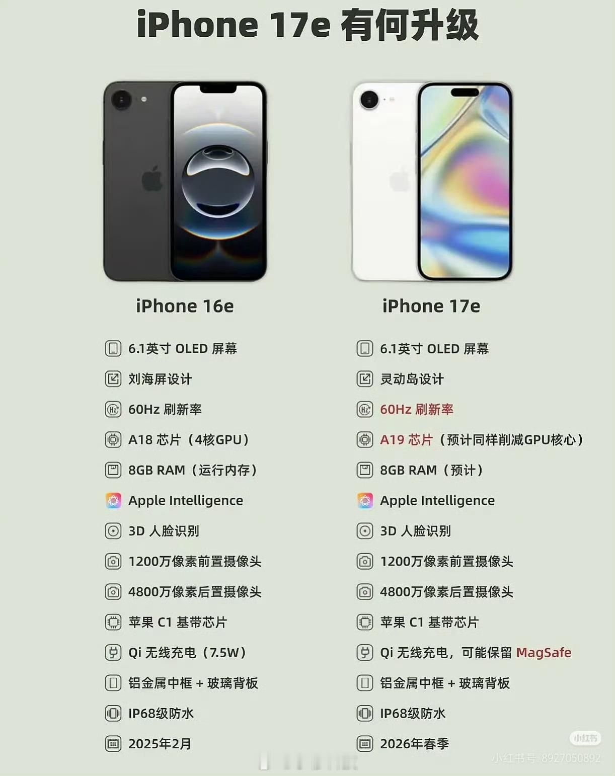 iPhone17e工程机已经测试差不多了,预计明年三月发布配置上iPhone 17e将采用苹果 iPhone 17同款A19芯片(可能砍核心。8GB内存,C1 基带芯片不变,最大的升级就是刘海屏升级灵动岛,但是很遗憾还是60hz,单摄也不变严格意义上iPhone17e是iPhone16换芯A19,升级8G内存,换了自研基带,砍掉超广角的iPhone16最大的问题就是如果还是128G定价4499,256G定5499,那在国内销量肯定会扑街,如果也能256G起步定4999起,还是有市场的