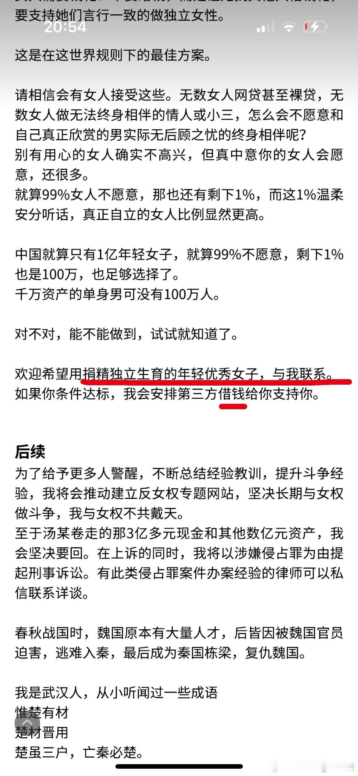 徐波这个人狂到什么程度呢?哪怕他现在明知自己已经(在一定范围内)引发了众怒,他也并不在乎。多益官博的所有文章他还是没有隐藏。他不仅是不把伴侣当人、不把几百个孩子当人,他也不避讳他从头到尾把所有人都当傻子。就拿去年波波这篇控诉__的文章来举例。他坚称他给二妞妈的钱都是“借款”,是生育“她独有权责的孩子”哪怕大家都心里门儿清孩子是他的种,他也依然要堂而皇之地钻这个空子,并毫不掩饰自己“你看,法律也拿我没办法”的傲慢。他总是狂妄地认为,即使千夫所指,只要在法律程序上占得先机,他就会赢。于是在和二妞妈闹翻后,他依然在招募接受这套“捐精”“借款”逻辑的女性来帮他批量制造孩子。在法律上,他无视常理,做到了极致地利己;在舆论上,他挑战公序良俗,试图构建有利于自己的叙事,把自己描述成一个被心机女欺骗的可怜富豪。可惜,除了incel 波粉和想爆他金币的狠人,世界上无人会听得进去一个疯子的波言波语。一个把孩子当虫子、把大众也当虫子的人。应该是真觉得自己是皇 帝,或者是上帝吧?然而上帝欲使人灭亡,必先使其疯狂。我就等着他被天收走的那一天。