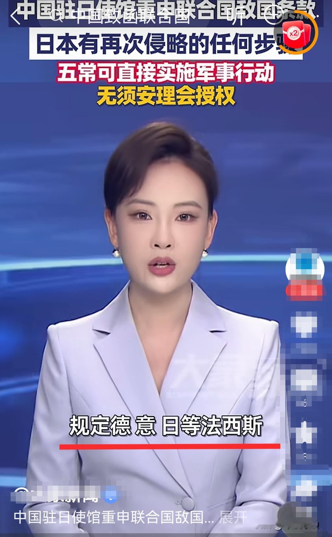 日本武力介入台海,中国就可以直接出兵日本!无需联合国安理会授权。 《联合国宪章》专门设立的敌国条款,规定了“德、意、日等法西斯或军国主义国家的任何一国有再次实施侵略政策的任何步骤,中法苏英美等联合国创始成员国有权对其实施军事行动,无需安理会授权”。这个条款对侵犯主权发动侵略战争的国家采取“军事行动”提供了法律法规支持保障。[赞][赞][赞]