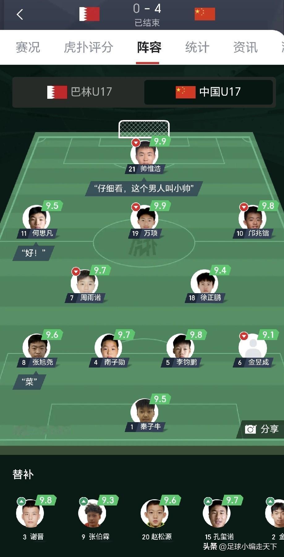 看了国足U17,我仿佛看到了未来进军世界杯的希望!控球率碾压,对方0射门。很久没见国足这么豪横了。 这场拿下来了,基本也就晋级明年的亚少赛了,这组除了巴林,剩下的队更加白给了,希望明年五月份捷报频传,二十年来首次挺进世少赛。 不得不说U17这批孩子确实太优秀了,比赛节奏比中超快多了,一拿球就拼命向前,而不是慢慢吞吞倒来倒去,防守也都是贴身紧逼;每次的停球传球处理球,都特别的从容合理。 未来几年希望邵佳一能大胆启用05后的球员,把那些老油皮子都踢出国家队,还国足一片净土,别把年轻球员带坏了,2030年会有竞争力,2034年能稳进世界杯。 小妖们加油吧,不要到了成年又熄火了,争取有机会出去发展。