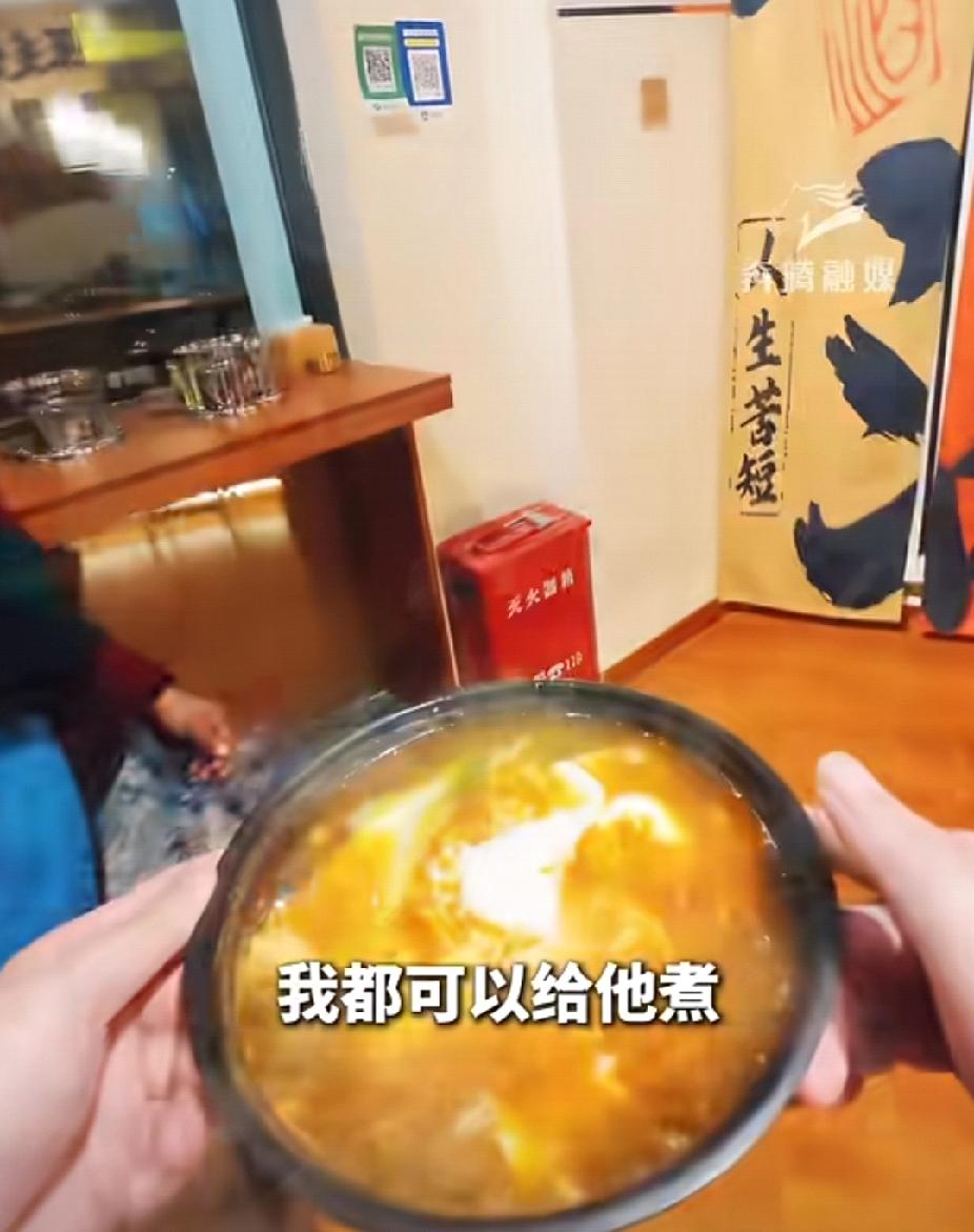11月21日,内蒙古呼和浩特凌晨一点钟,一家餐馆走进来一位大叔:“能给我一个打包盒吗?我需要一个碗泡泡面!” 老板循声看去,看到一个身穿厚厚的军大衣的衣服,戴着一个厚厚的棉帽子,手中拎着一袋泡面。 大爷看起来有些拘谨,说着:“我出去泡就行。” 老板看看时间,已经是凌晨一点,外面的空气冷的刺骨,而大爷却连晚饭都还没吃上,一定冻坏了! 老板随即将大爷请进店里,贴心地为大爷把面煮好,又大爷添上了一个鸡蛋。并嘱咐大爷:“以后下班晚,没地方吃饭,就来我这里,煮完在我这吃就行,外面太冷了!” 这碗热腾腾的煮泡面,瞬间温暖了大爷的心,而面碗里那个金黄色的荷包蛋,更像是冬日里的暖阳,照耀着整个寒冬!