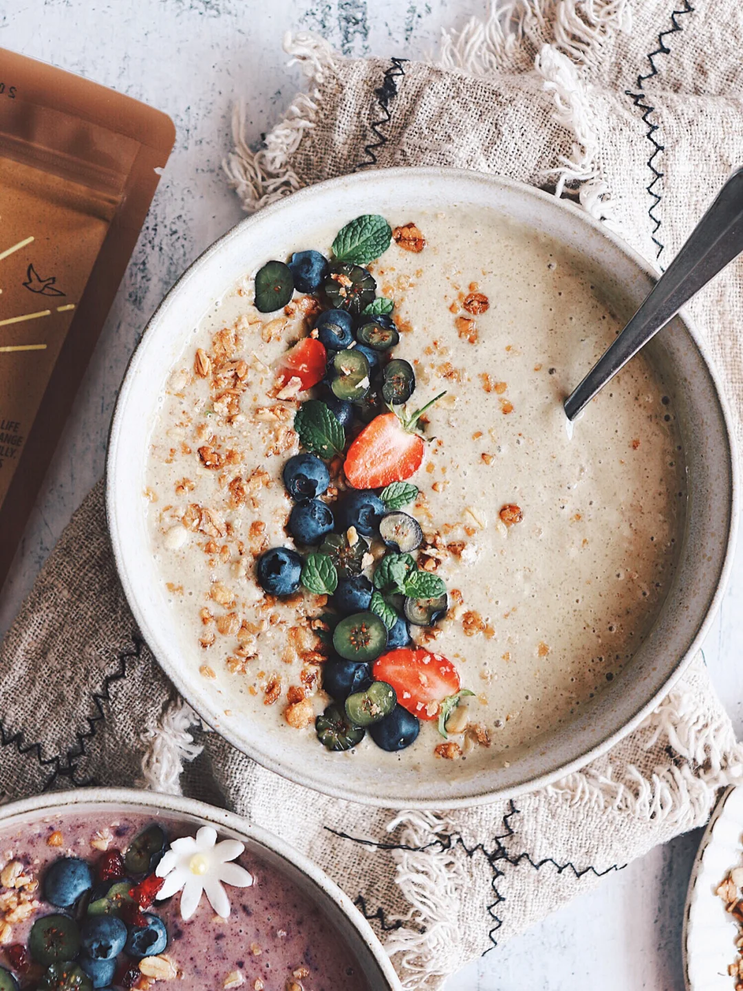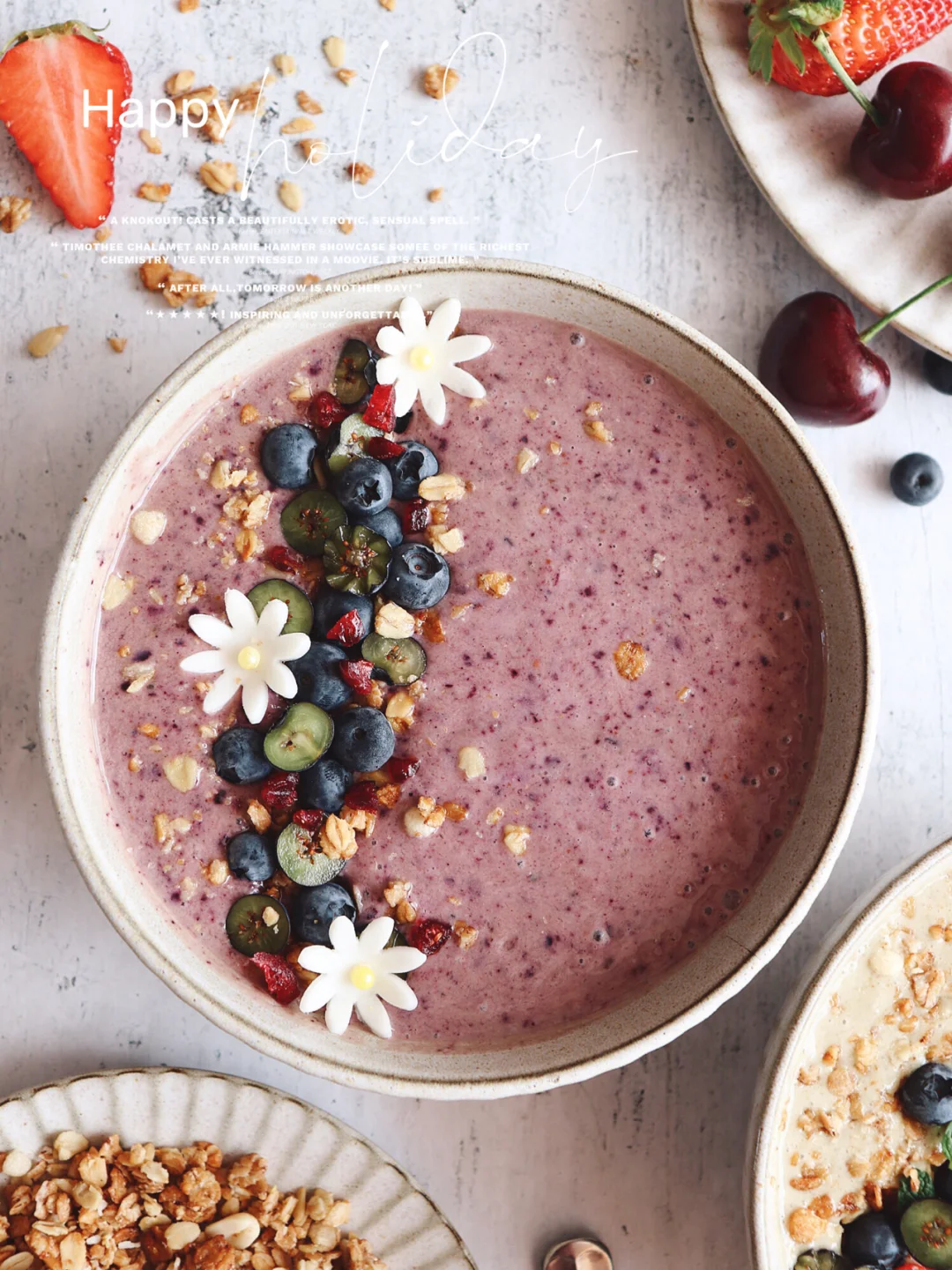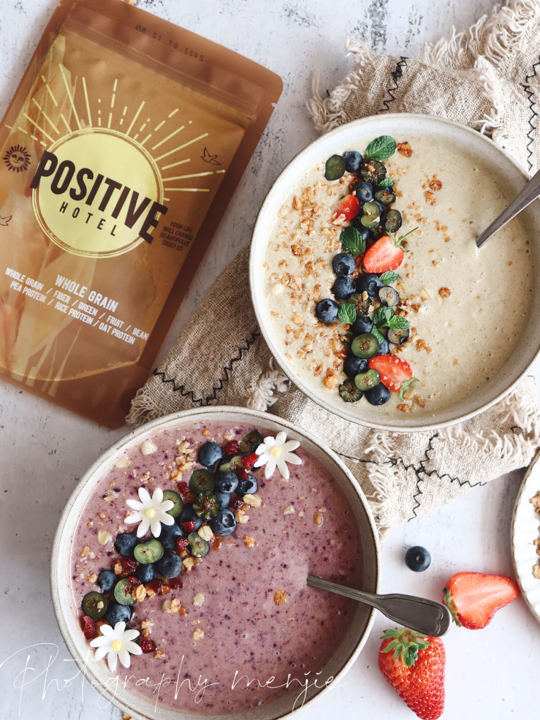夏天正在马不停蹄的赶来 瘦身我已经提上了日程💃 最近晚餐我一直用低卡思慕雪代餐 今天来和小仙女们分享两款高颜值思慕雪 简单、快手、低卡❗️还可以添加你喜欢的水果[偷笑R] - ❥【莓果思慕雪材料】 莓果代餐粉…3勺 冻香蕉…1根 酸奶…200g 蓝莓…适量 【谷物思慕雪材料】 谷物代餐粉…3勺 冻香蕉…1根 酸奶…200g 猕猴桃…适量 🍁材料的量可以根据自己的口味适当增减哈😋 - ❥【做法】 ♥️将两款思慕雪的材料分别放入果汁机打成泥,倒入碗中,放上自己喜欢的水果即可。 ♥️是不是超方便呀🤣天气热了起来了,用它做早餐也是完全可以的。 🫐莓果思慕雪上面放的是:麦片、蓝莓、蔓越莓干、巧克力花。 🌾谷物思慕雪上面放的是:麦片、蓝莓、草莓、薄荷叶 - Tips: 代餐粉用的是全智贤同款positive hotel代餐粉,很火是真的,成分也确实很棒~袋包装设计是可以外带的,冲牛奶或水就可以直接喝,特别方便~ 出门必备零食! 祝小仙女们都能健康享瘦!越来越漂酿~💁‍♀️🧏‍♀️