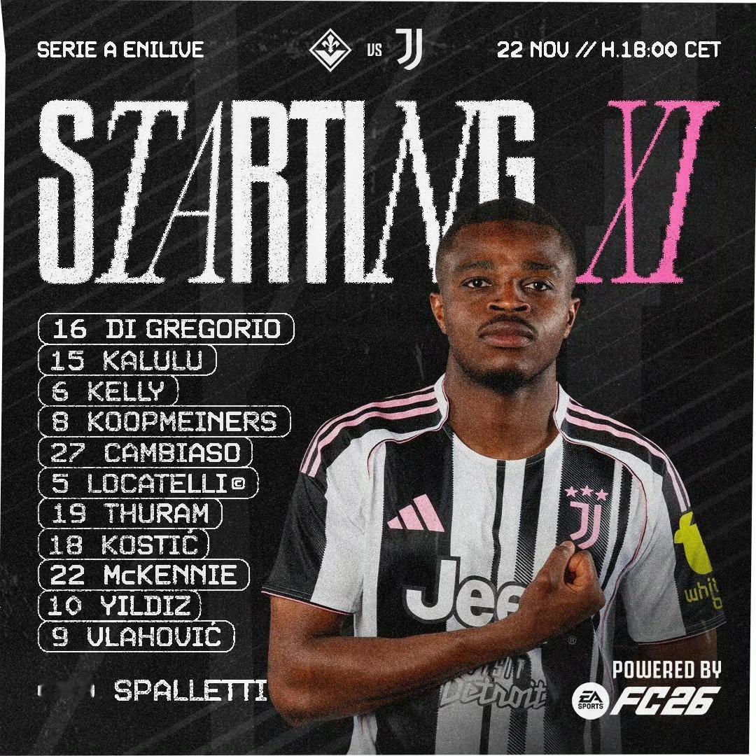 意甲第12轮尤文客战佛罗伦萨首发(3-4-2-1) 迪格雷戈里奥/ 卡卢卢 凯利 库普迈纳斯 坎比亚索 洛卡特利 K图 科斯蒂奇 麦肯尼 伊尔迪兹 弗拉霍维奇。 Forza Juve