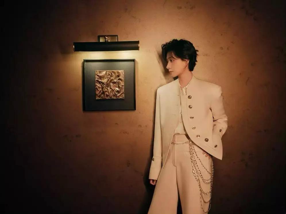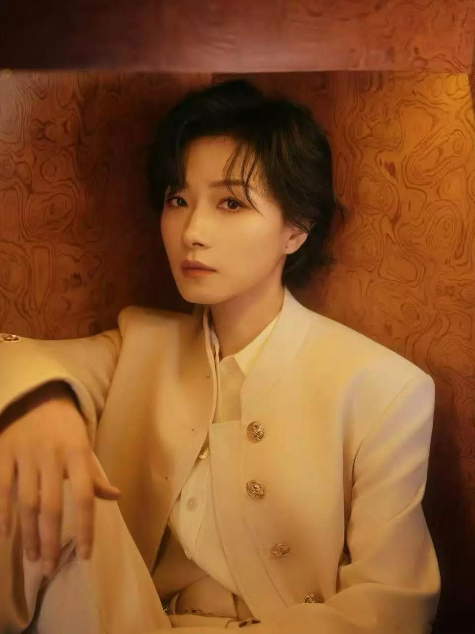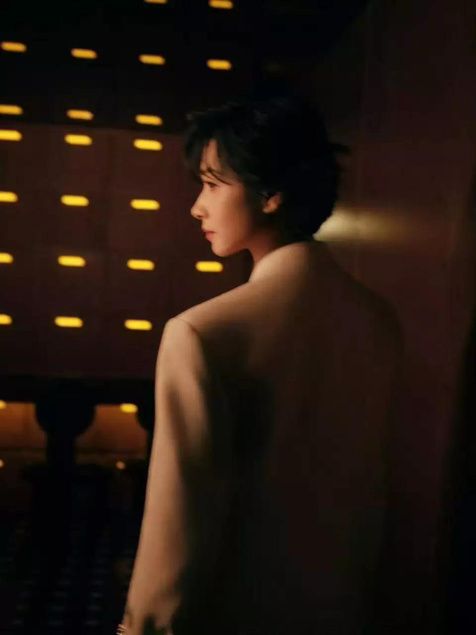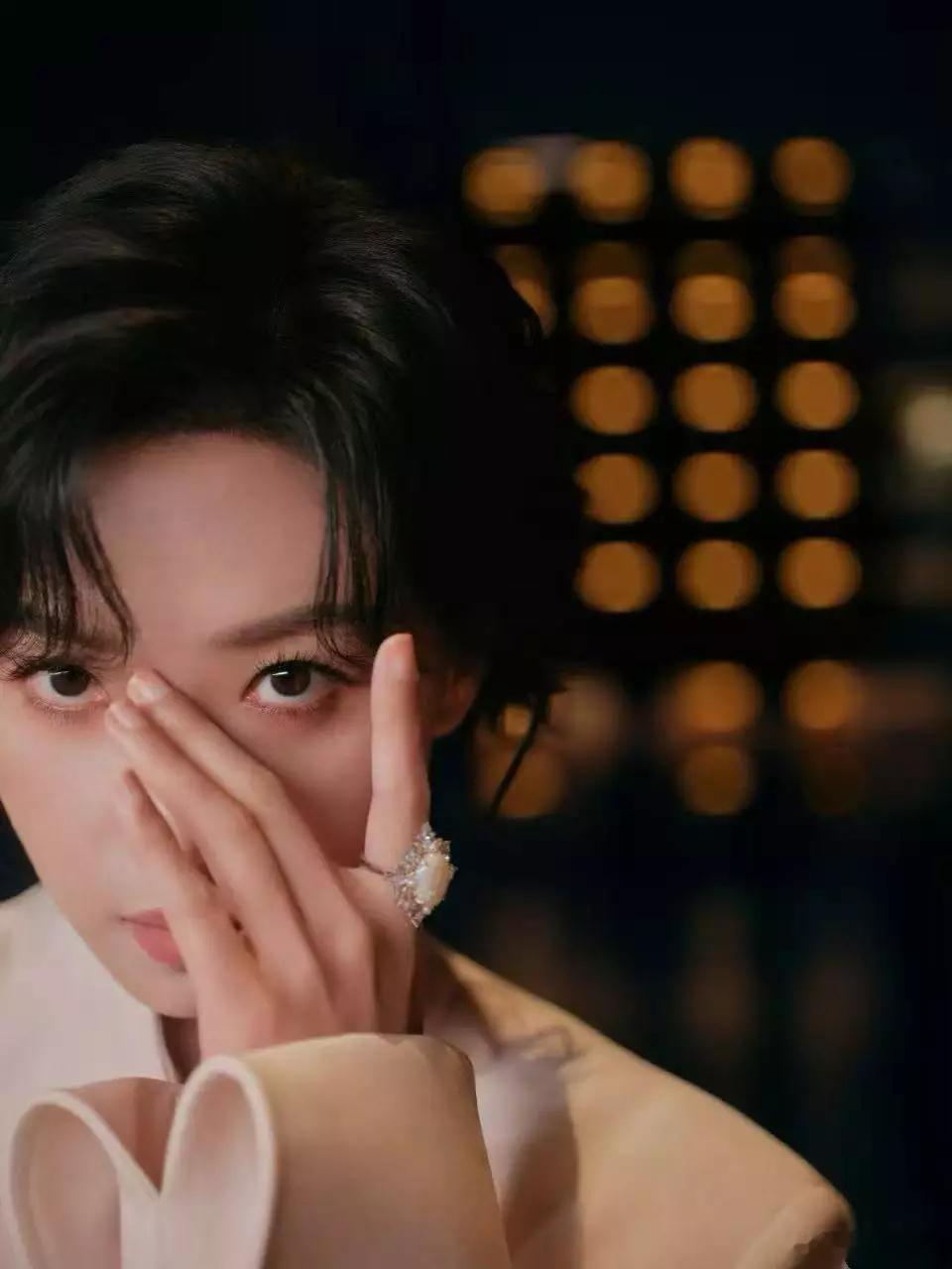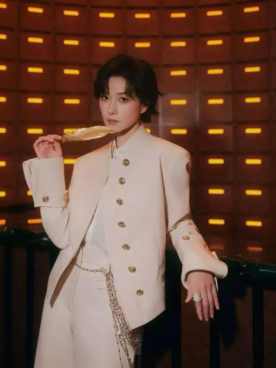 万茜目视镜头眼中充满故事感手拿羽毛侧脸线条优越