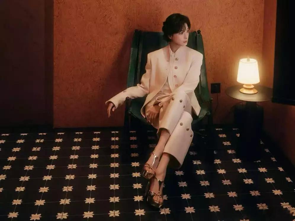 刘亦菲把死亡玫粉穿出了定制款的感觉,这种颜色普通人穿上分分钟黑三度,她居然能穿出