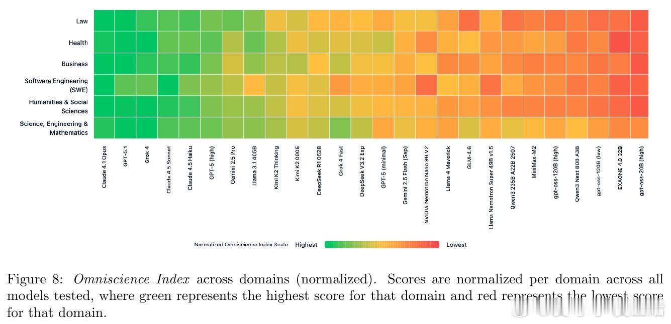 [CL]《AA-Omniscience: Evaluating Cross-Domain Knowledge Reliability in Large Language Models》D Jackson, W Keating, G Cameron, M Hill-Smith [Artificial Analysis] (2025) 在大语言模型(LLM)日益广泛应用的今天,如何衡量模型的知识可靠性,尤其是跨领域的事实准确性与自我认知能力,成为关键挑战。本文提出了全新基准——AA-Omniscience,专注于测评模型在42个经济重要主题、6大领域内的知识召回与校准能力。该基准包含6000个问题,均来源权威学术与行业资料,覆盖商业、人文社科、健康、法律、软件工程及理工科。与传统只考察“答对率”的评测不同,AA-Omniscience设计了“无所不知指数”(Omniscience Index,范围-100至100),不仅奖励准确回答,更严格惩罚错误猜测,鼓励模型在知识不足时选择放弃回答,实现了对“自知之明”的量化。评测结果揭示:1. 目前仅有极少数模型(如Claude 4.1 Opus)能在该指标上超过零分,显示大多数前沿模型仍存在严重幻觉(hallucination)与过度自信问题。2. 不同模型在不同领域表现差异显著,表明选择模型应根据具体应用场景的知识需求,而非单纯追求整体性能。3. 模型规模与准确率正相关,但规模并非降低幻觉率和提升知识可靠性的充分条件,表明训练方法和架构优化同样重要。4. 评测还考虑了运行成本,为实际部署提供经济效益参考。该研究强调,现有评估体系过度鼓励猜测,忽视模型识别自身知识边界的能力,导致误导应用风险。AA-Omniscience通过自动化题目生成与严格分级,保证了数据的专业性与持续可扩展性,且公开了部分题库,助力社区推动更可信赖的模型研发。一句话总结:真正智能的模型不仅要“知道”,更要“知道自己不知道”,这是实现可靠AI应用的基石。全文详见:arxiv.org/abs/2511.13029