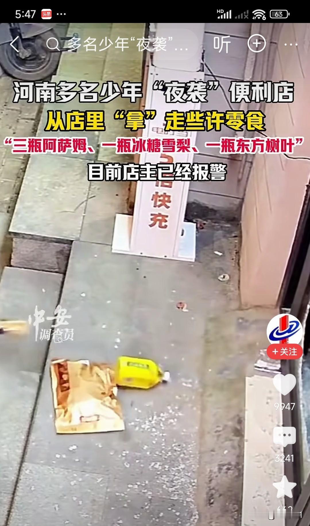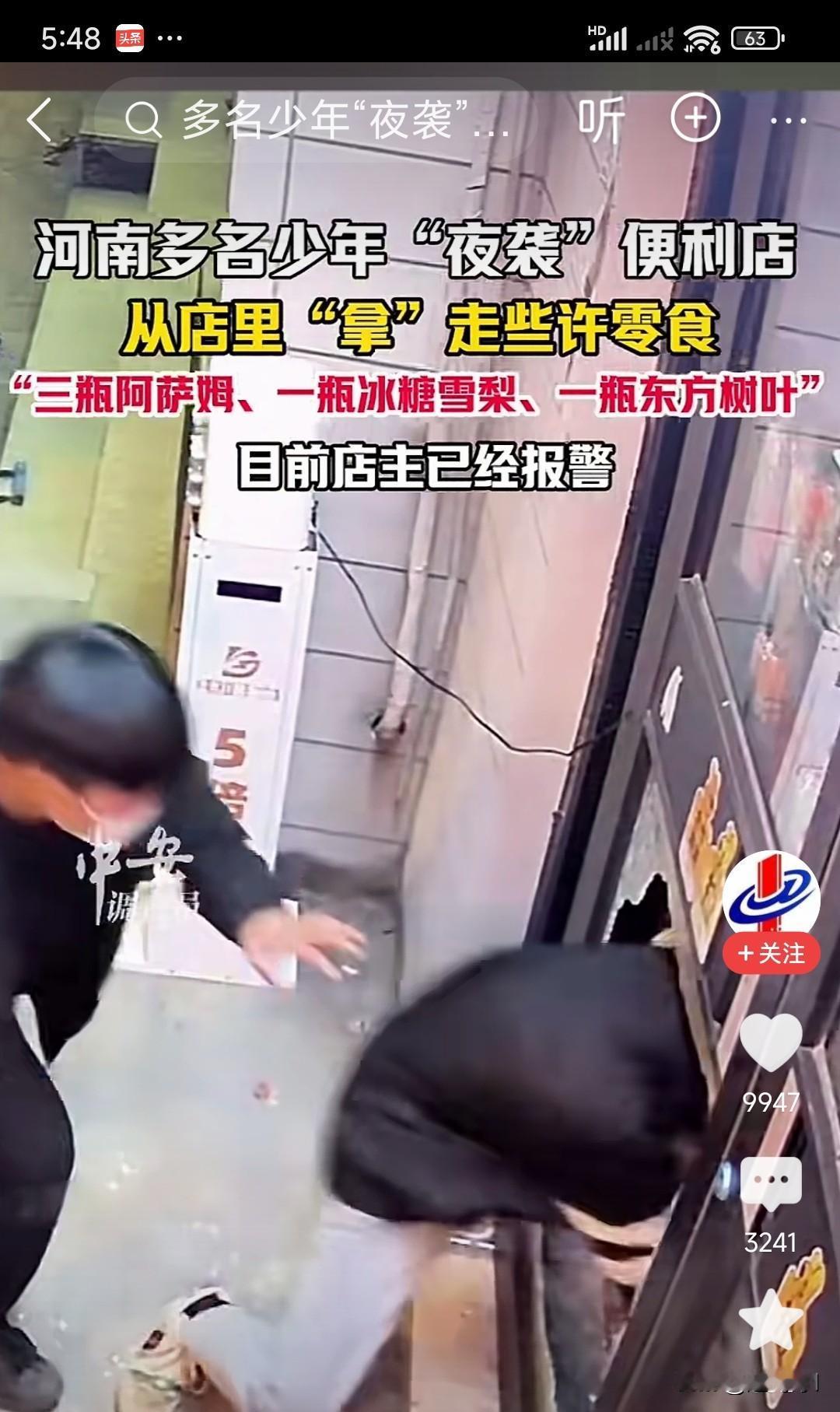 11月19日,在河南开封,有年轻人夜袭便利店,拿走很多东西。 都现在这个社会了,怎么还有这样的人呢?拿的东西都不值钱,但是性质不一样,这是明目张胆的抢呀,店主已报警,这监控拍的清清楚楚,都是一些年轻人,这一生不完了吗? 发生在河南,是个人口大省,影响太负面了,警方肯定要破案的。所以教育孩子成人比成才更重要。 这样的孩子一生都会有污点了,长大后就会后悔了。 三个人就是集体作案了,抢劫罪是重犯,这些都是孩子,干什么不好,非要去抢。洗劫事件 河南盗窃