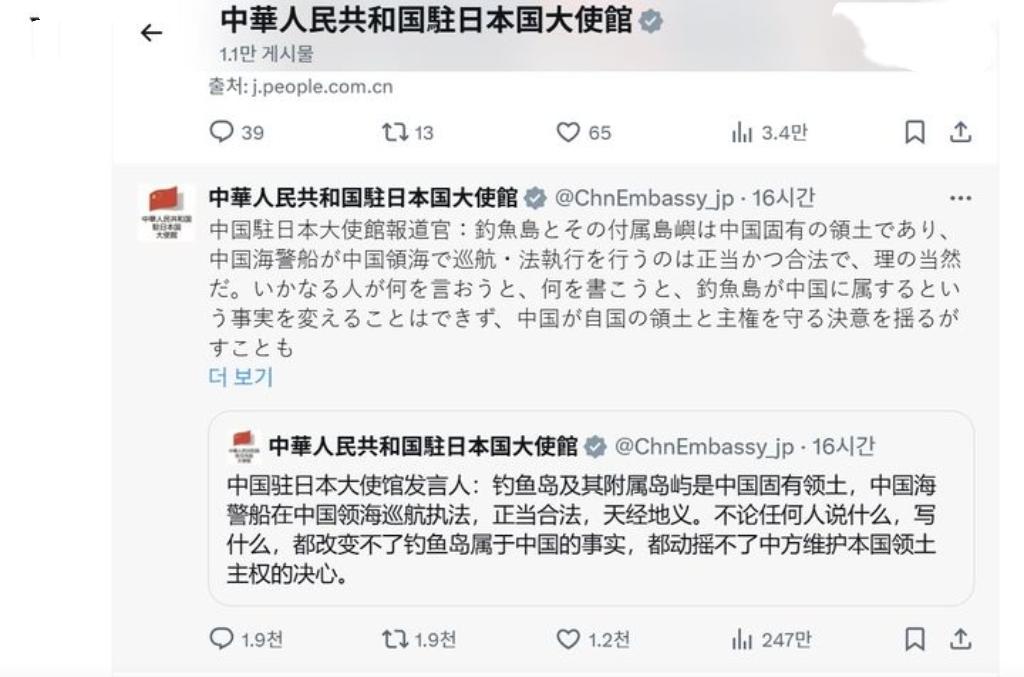 我驻日使馆:钓鱼岛是中国固有领土,海警执法天经地义! 我驻日大使馆21日晚在X上发文:“钓鱼岛及其附属岛屿是中国固有领土,中国海警船在中国领海进行巡航执法,正当合法,天经地义,不论任何人说什么,写什么,都不会改变钓鱼岛属于中国的事实,也不会动摇中国捍卫本国领土和主权的决心。”