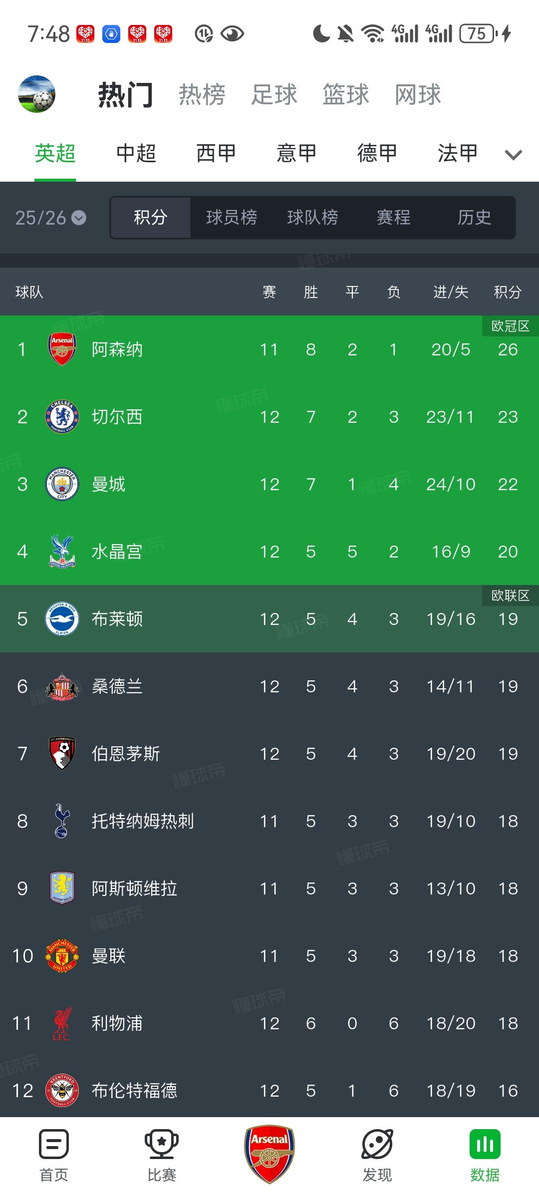 利物浦竟然掉到积分榜第11名了!这赛季的利物浦是怎么回事呢?看来斯洛特的帅位保不了多久了。然后曼城这轮也输了。这赛季阿森纳真是千载难逢的机会了,自己不掉链子的话基本九成夺冠了。