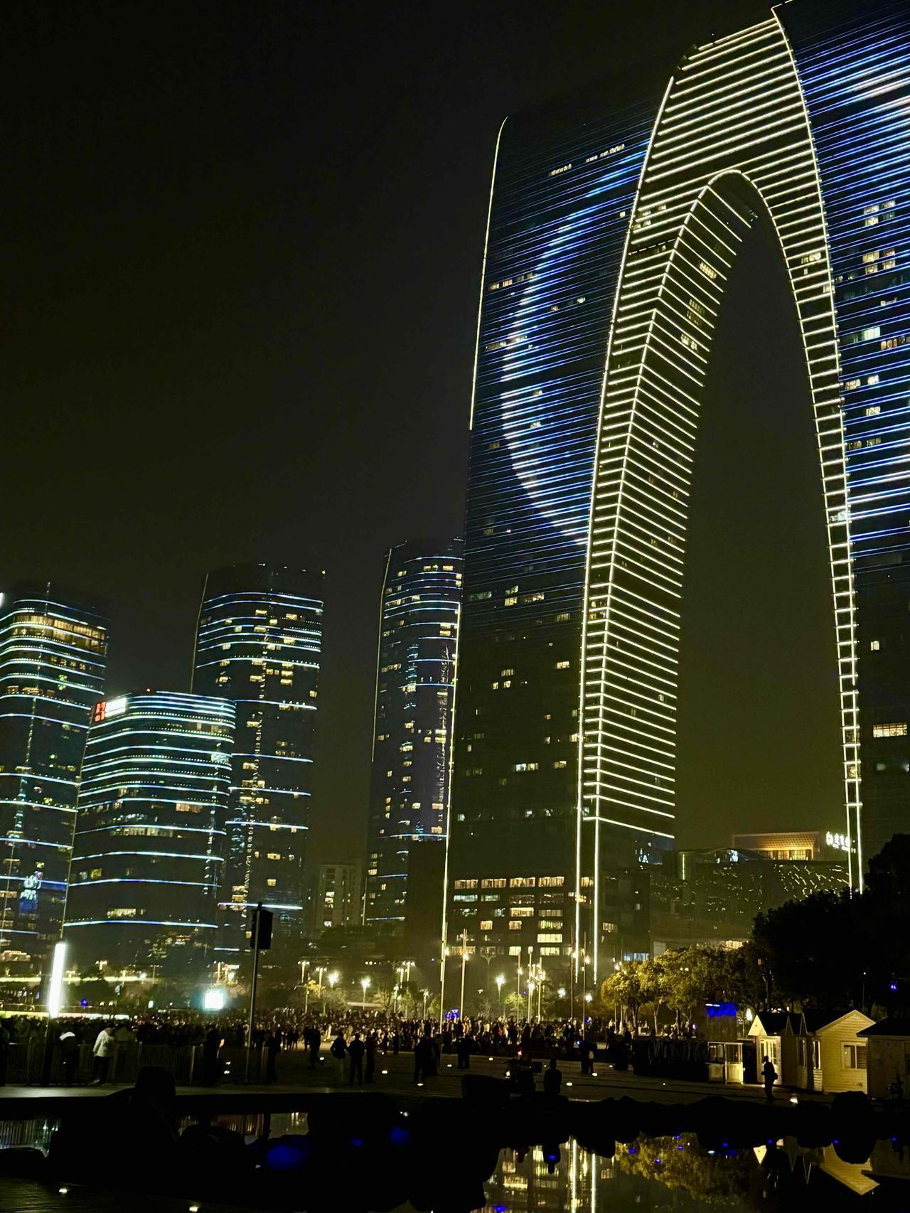 分享一张夜晚的随手照片苏州金鸡湖畔“东方之门”。