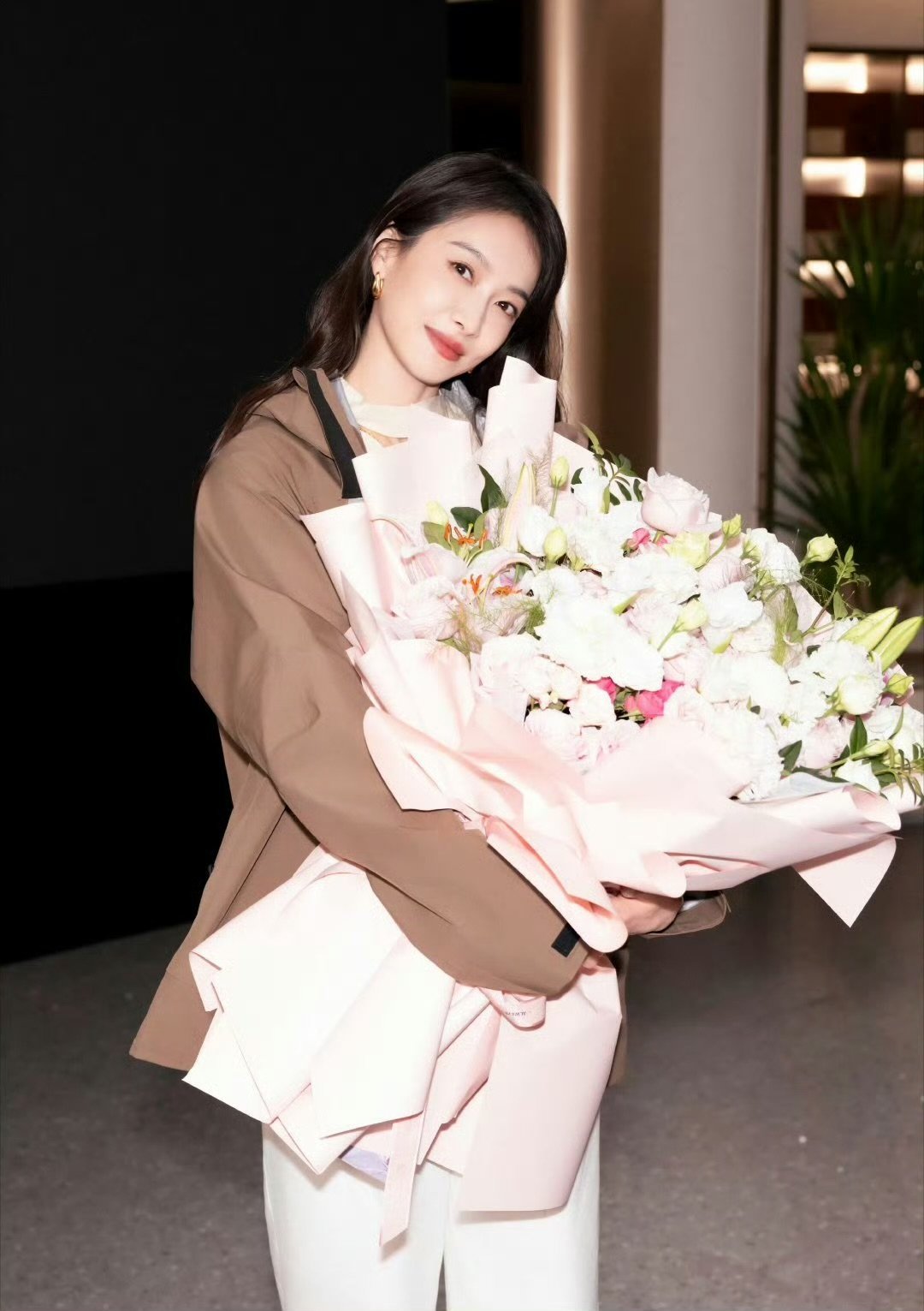 刘亦菲把死亡玫粉穿出了定制款的感觉,这种颜色普通人穿上分分钟黑三度,她居然能穿出