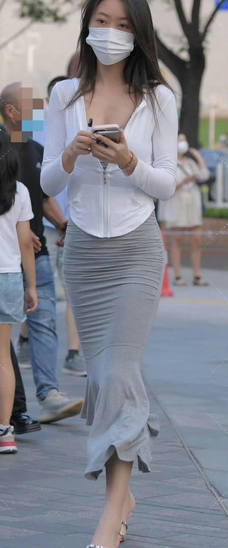 在繁忙的都市街头,一位女士以简约而不失优雅的穿搭,成为了众人瞩目的焦点。她身着一件白色长袖开衫,纯净的白色为整体造型奠定了清新脱俗的基调,开衫的设计又增添了几分随性与自在。 下装她选择了一条灰色褶皱鱼尾半身裙。灰色的低调与沉稳,与白色上衣形成了柔和的色彩过渡。