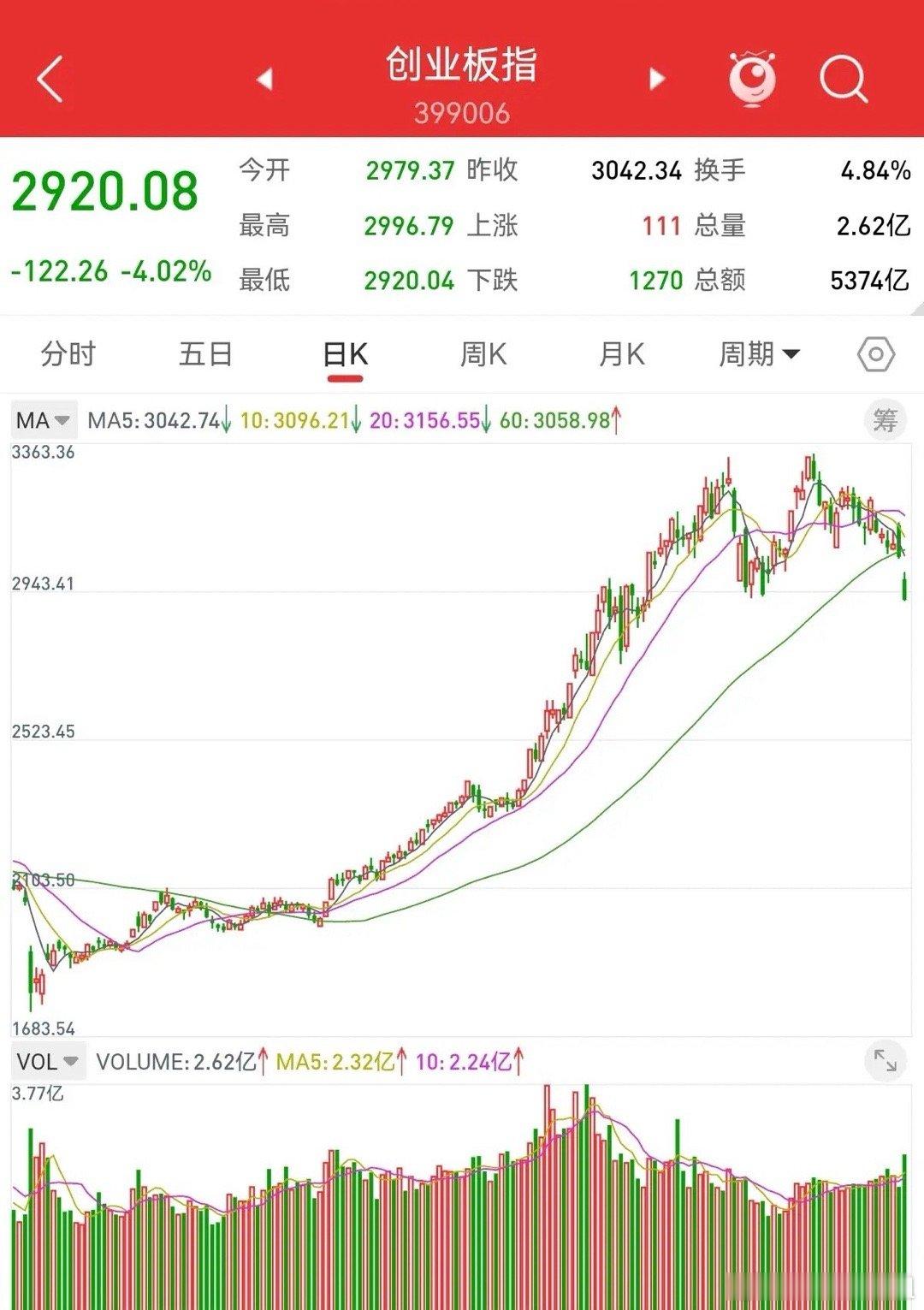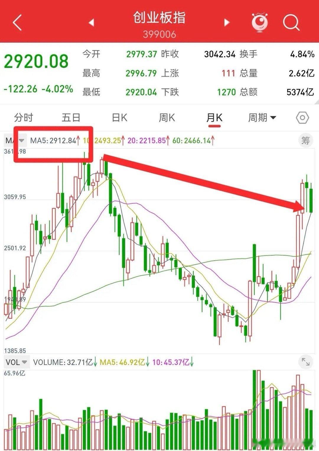 创业板本周大跌4.02%,累计跌幅达6.15%,从高点回落12.3%,目前已回撤至五月均线附近,下跌空间有限,下周有望大幅上涨,可在五月均线周边逢低小幅加仓。此前我已准确预测创业板见顶回落,并反复强调逢高离场。截至本周五,创业板12.3%的跌幅显著高于上证指数的4.9%,回调已基本到位。涨时重质,跌时重势。创业板以高科技股为主,虽业绩普遍偏低,但成长性更突出。在上升趋势中,高科技股涨幅远超传统产业——四月初以来,创业板最高涨幅达93%,而上证指数仅上涨32%。牛市中,五月均线是重要支撑位而非六十日均线。当前创业板五月均线在2912点,周五收盘2920点,仅相差8点。下周若跌破五月均线,反而迎来短线加仓良机。结合四月初以来的表现可明确:创业板处于明显上升趋势,涨幅远超上证指数;而下跌趋势中,上证指数跌幅更小、更抗跌。操作上,在创业板与上证指数、高科技与传统产业间灵活切换,能获得更优收益。无论是上证指数还是创业板,回调至五月均线附近,都是逢低加仓的好机会。祝各位下周好运!