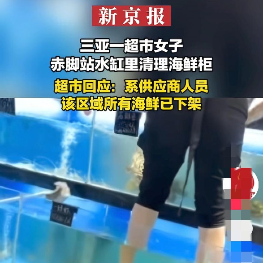 三亚超市这操作, 是把顾客当“傻子”糊弄? 赤脚踩在海鲜缸里打扫卫生?这操作也太匪夷所思了吧,瞬间不知道是海鲜更鲜还是脚臭更臭了。 三亚某超市海鲜柜里,供应商人员直接赤脚下缸清理,这画面一曝光,谁看了不说句“胃里翻江倒海”? 超市说是供应商的人,这批海鲜也已经下架,听着像甩锅又像补救,但这事真就“下架”能完?且不说脚踩海鲜柜多埋汰,超市连供应商的操作都管不住,平时的卫生检查怕不是走个过场? 总想着出事才“严罚”,真把顾客的食品安全当回事,就得把监管钉在日常里,这些都是常识问题,开会的时候也会说的呀。 你们遇到过超市里的“隐形脏操作”吗?评论区说说,避个雷!三亚商超 三亚农贸集市 大三亚农贸市场 三亚市场 海鲜 打扫卫生