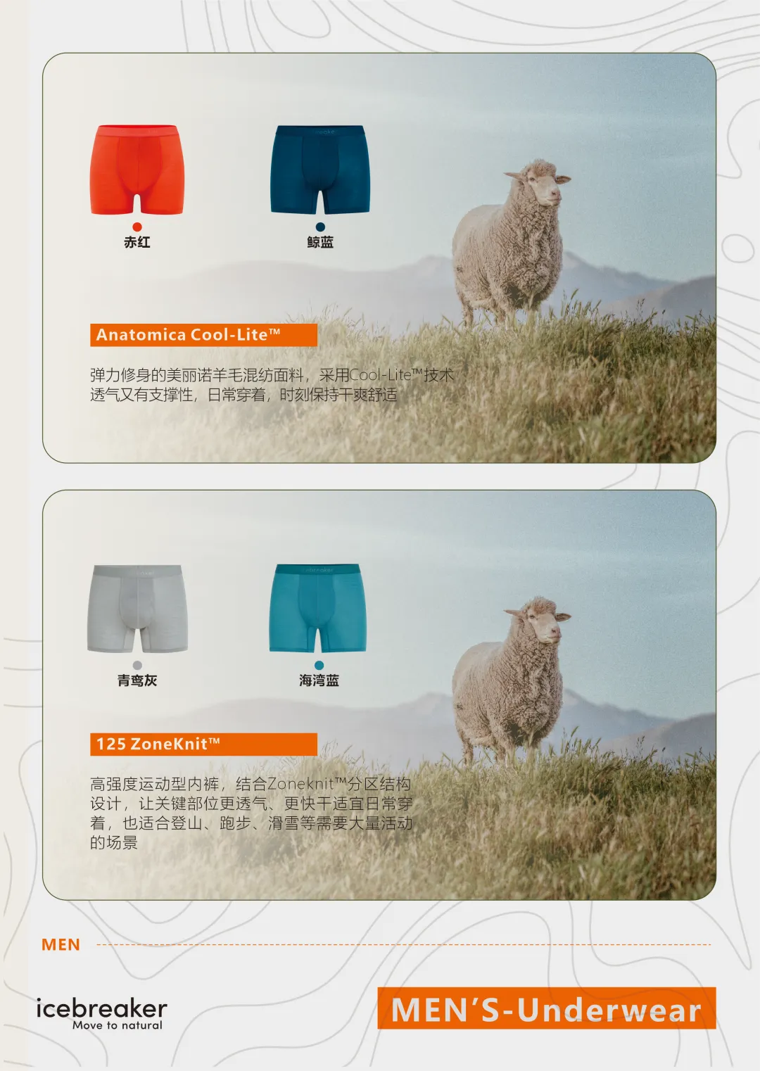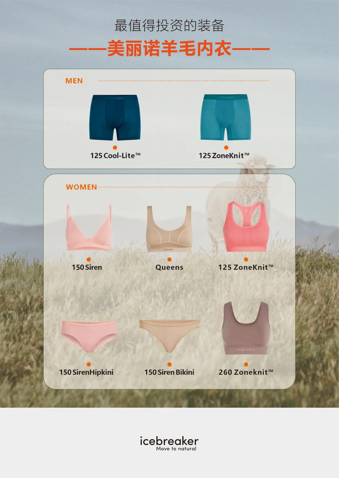 整个户外市场中,icebreaker的美丽诺羊毛内衣&内裤产品是我穿过zui稳、zui全的一个。剪裁舒服、美丽诺羊毛品质高——穿一次就回不去了