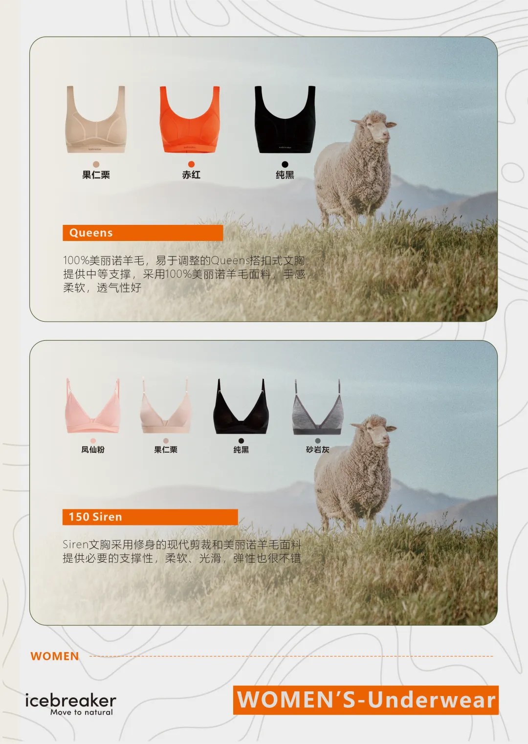 100%美丽诺羊毛面料,柔软透气、贴合自然,肩带可调节,轻中度支撑,适合长时间穿着