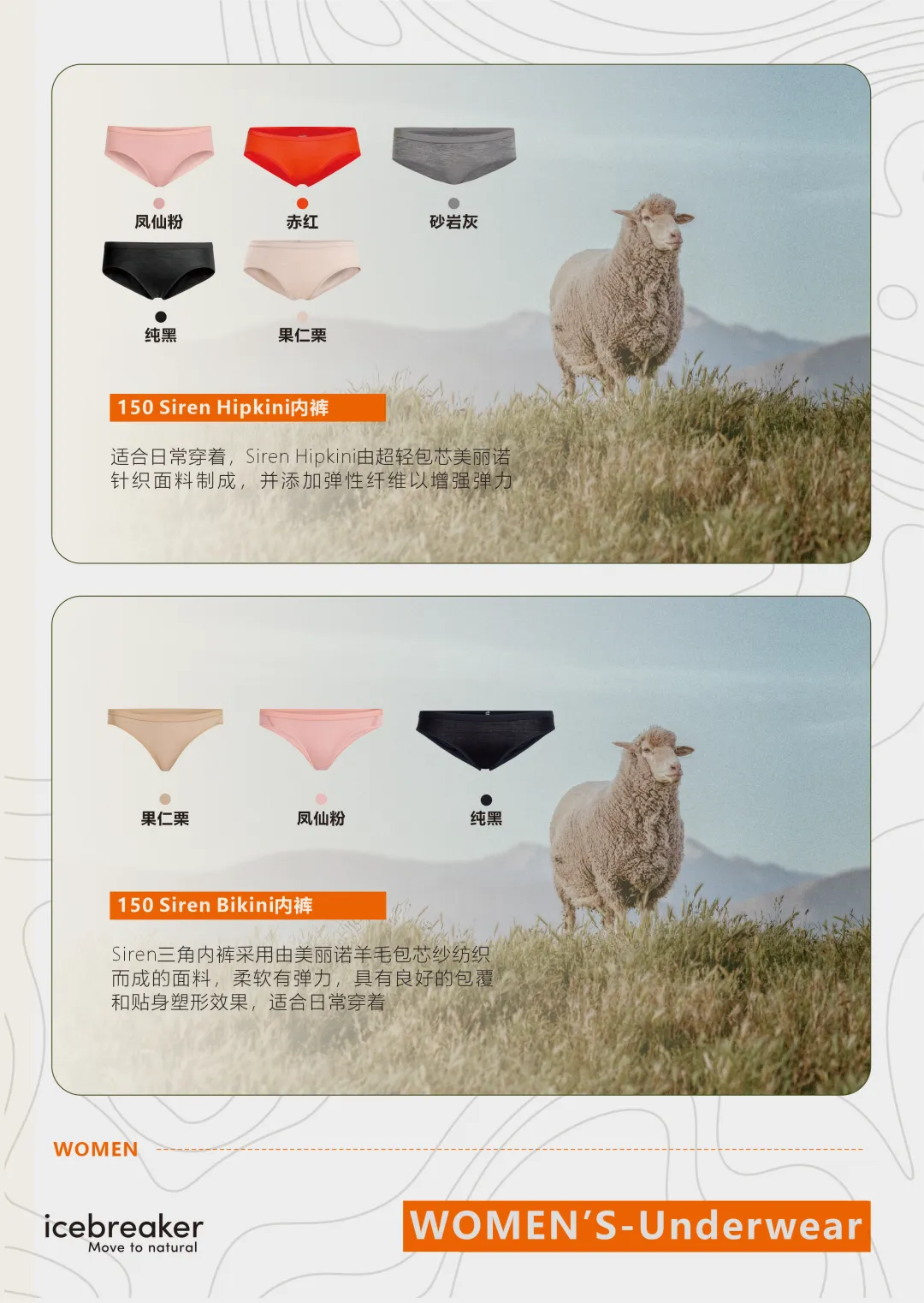 Siren三角内裤:柔软弹力的美丽诺羊毛包芯纱面料,贴身包覆、自然塑形,适合日常和户外轻活动