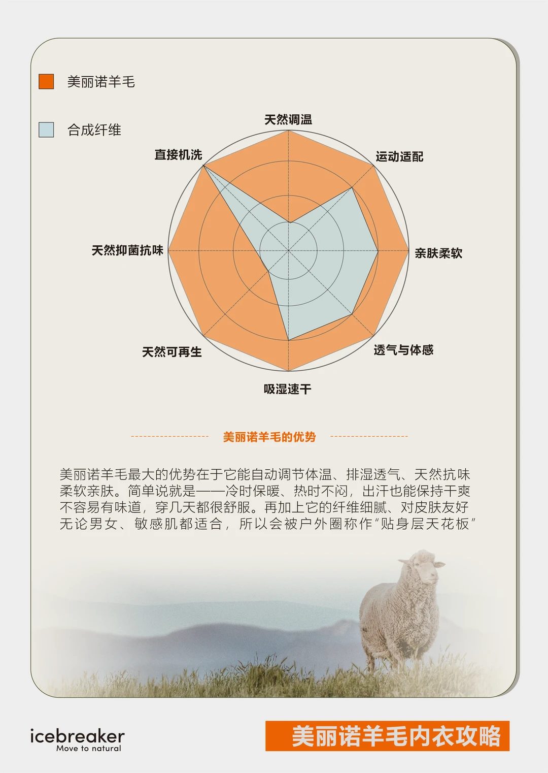 [举手R]天然纤维(美丽诺羊毛):透气、抗异味、调温能力强