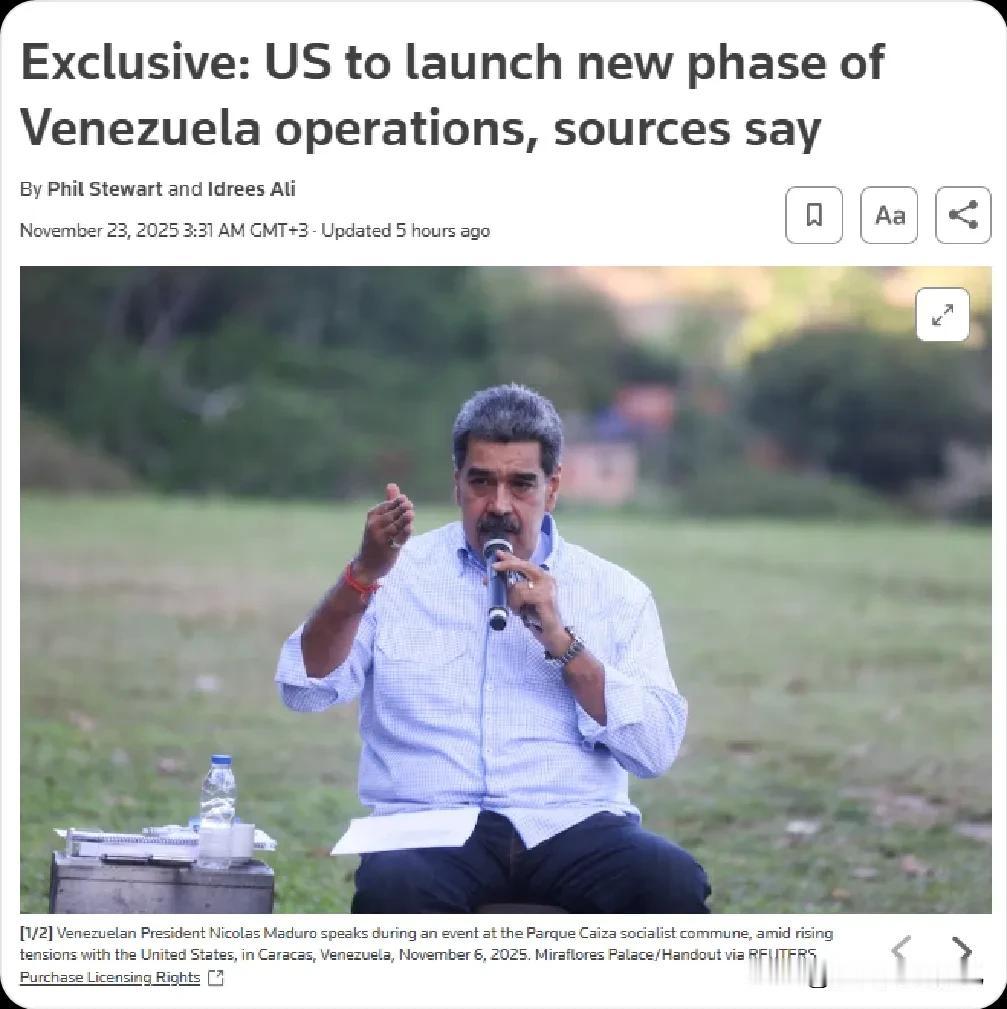 美国正准备对委内瑞拉马杜罗政府展开新一阶段的军事行动,很可能首先采取秘密行动。 正在考虑的选项包括推翻马杜罗政权华盛顿指控马杜罗领导一个贩毒恐怖组织——预计将于周一正式宣布这一认定。