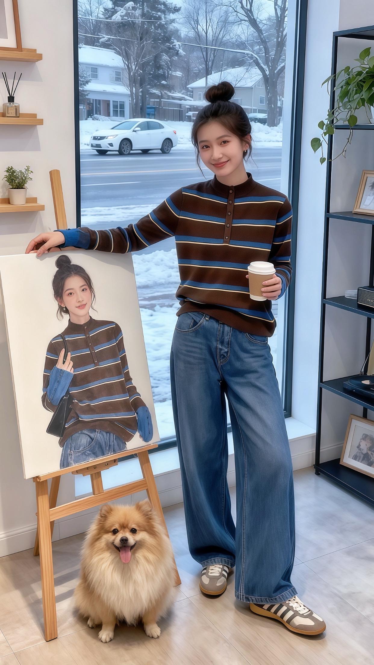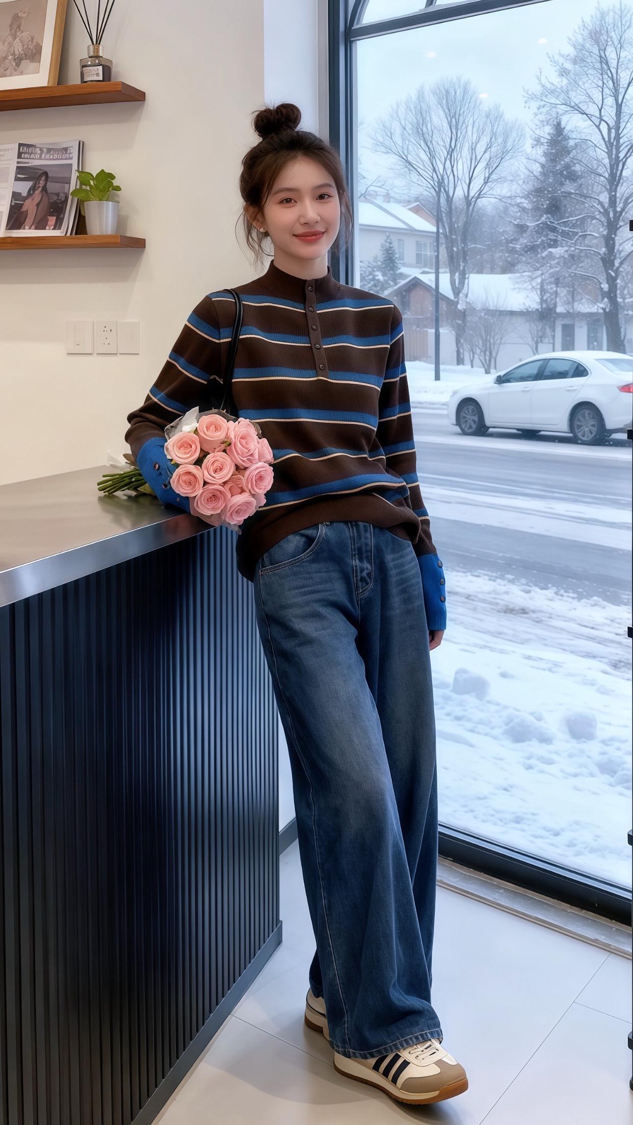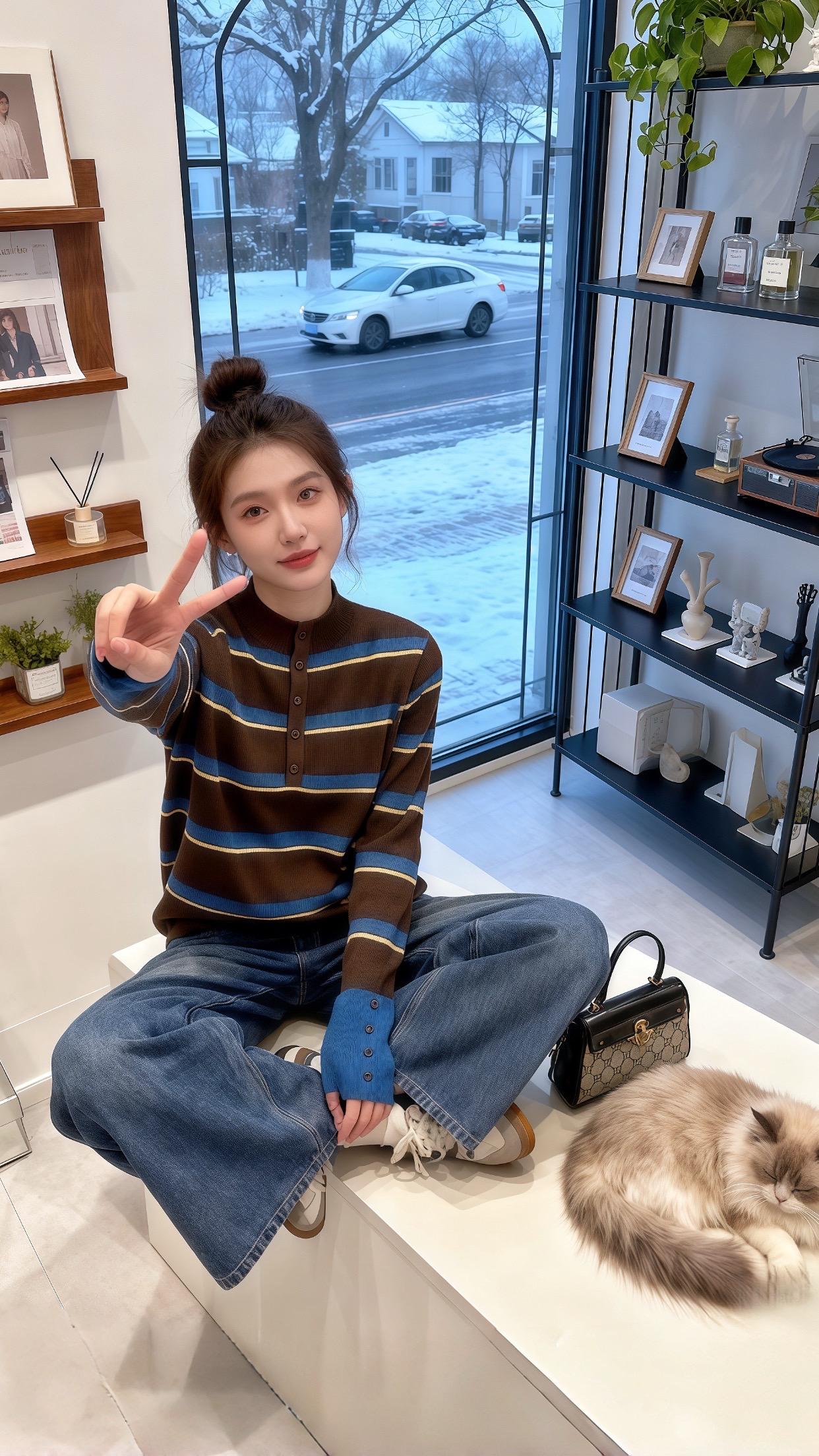 😍灰色毛衣+墨镜,轻松自在,元气满满!💖👀👌