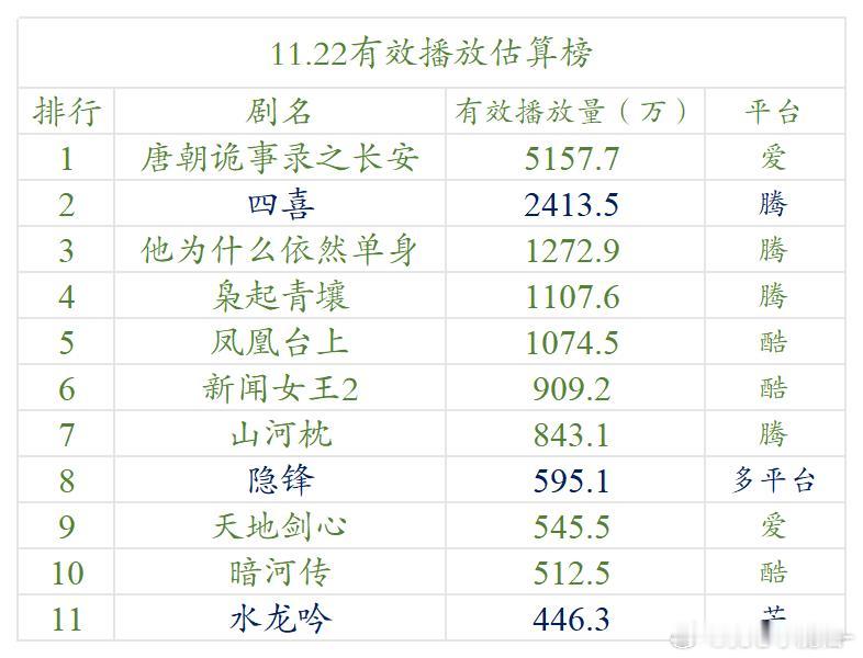 11月21日云合播放占比唐朝诡事录之长安29.6%四喜17.2%可怕,占比17
