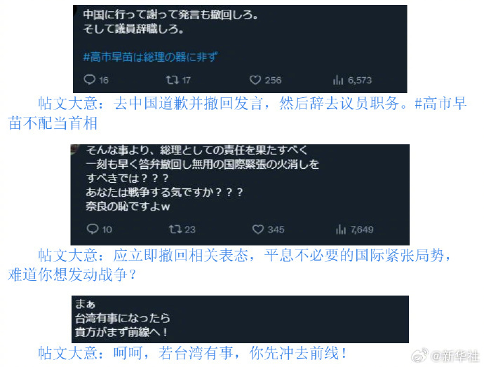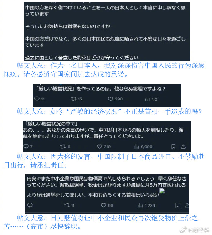 在日本首相高市早苗的社交媒体X账号下,其近期发布的帖文引发大量日本网民强烈批评。从外交、经济到社会民生政策,民众表达对高市的不满与不信任,要求其撤回涉台错误言论、辞去首相职务的呼声不断高涨。(新华社 记者:彭纯 许艺颍)