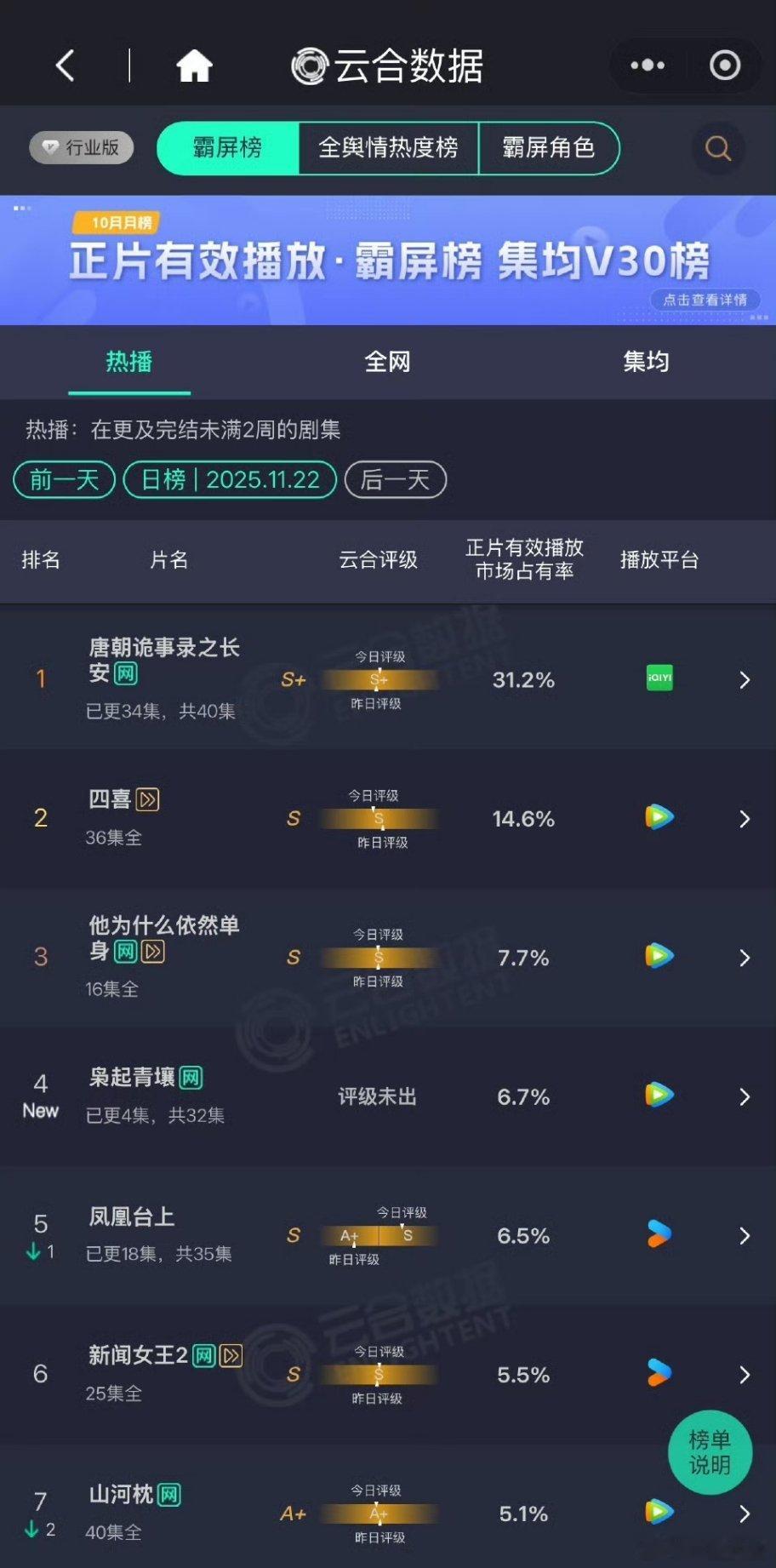 《枭起青壤》首播3+1集,晚上6点开播,站内无固屏,题材小众,预测云合播放量14
