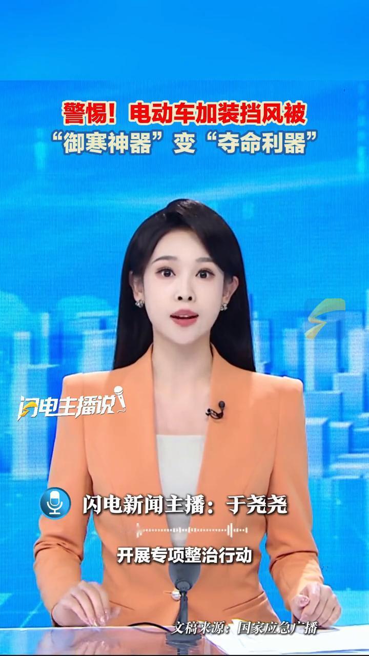 警惕!电动车加装挡风被。 闪电新闻主播于尧尧。 "御寒神器"变"夺命利器"!电动自行车加装挡风被,看似不起眼的"小改装",实则危机四伏。 ·2025年8月,上海一女子骑电动自行车时挡风被卷入前轮,她整个人重摔在地,当场失去意识。 ·2025年6月,江苏张家港一男子超车时不慎碰擦他人电动自行车挡风被,致其连人带车摔倒,腿部骨折。 ·2024年12月,江苏泰兴一辆电动自行车与轿车碰撞挡风被导致车主操作受限,双手无法支撑缓冲,造成较大伤害。 对此,近年来不少地方也出台细则开展专项整治行动。例如今年10月20日起,邢台交警启动专项整治,对加装厚重挡风被的电动自行车会依法拆除并收缴非法装置。 2024年11月,山西、辽宁等多地明确表示要严查电动自行车加装挡风被的行为。保暖可通过戴头盔、护膝、穿冲锋衣、羽绒服来实现,但绝不能以威胁生命安全为代价。小电车挡风被 电瓶车挡风被 电瓶车前挡风被 电动车挡风被皮 骑行防护挡风被 电动三轮挡风被